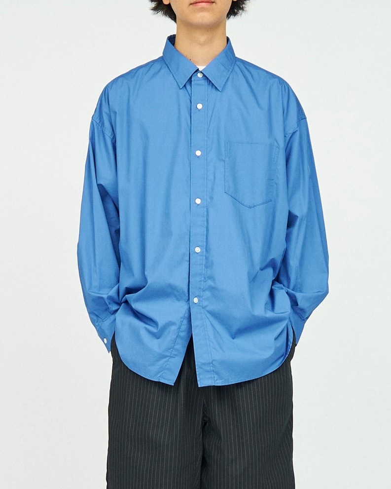 吸湿・吸水性、保温性に優れたコットンポプリン素材を採用し、しなやかで品のある光沢感が特徴です。一見するととてもベーシックなシャツですが、胸ポケットに加えてサイドシームには大容量のポケットを配置。日常での使いやすさをきちんと考えた、FreshServiceらしい機能性が詰まっています。