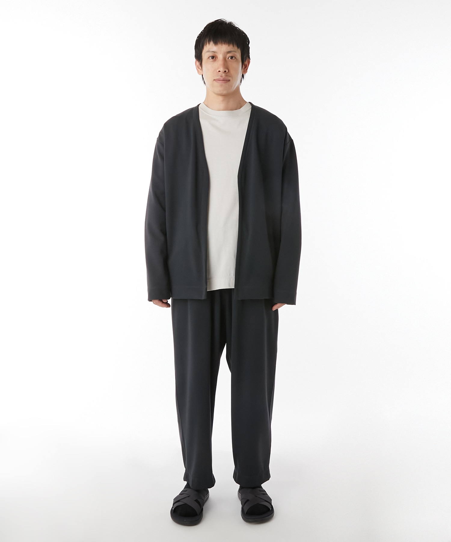 このショートカーディガンとイージーパンツは、同素材でセットアップとしても着用可能。
