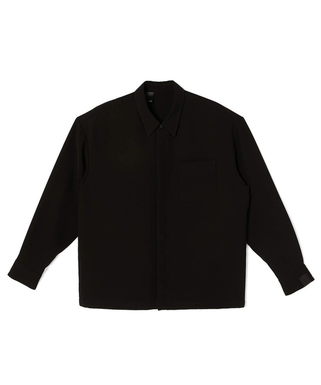 襟元をカンヌキ留めにした、新たな解釈のボタンダウンシャツ。 フロントは比翼仕立てで、袖先にはブラックに染めた小ぶりなドットボタンを採用。全体をソリッドでミニマルな印象に仕上げています。バックスタイルにはヨークの切り替えとボックスタックを取り入れ、立体的なシルエットを演出。裾はラウンドカット仕様。 左袖には〈N.HOOLYWOOD COMPILE〉の象徴であるブラックのブランドネームを配置。 やや長めの着丈と、程よくゆとりのあるスリムフィットが特徴。生地には、マットでなめらかな質感のダブルクロスを使用し、上品な落ち着きと快適な着心地を兼ね備えた一着です。 モデル身長 cm 着用サイズ セットアップのパンツはこちら >>WIDE TAPERED EASY SLACKS|PT07-095|BLACK https://minka.thebase.in/items/84055678 >>WIDE TAPERED PANTS|2252-PT07-095|CHARCOAL https://minka.thebase.in/items/114573334 【N.HOOLYWOOD COMPILE】 「フォーマル、ドレスウエアの在り方をコンテンポラリーに編集する」というコンセプトを基に、カジュアルなものをドレスアップ、フォーマル&ドレスライクなものをカジュアルに落とし込むなど、シチュエーションを問わないボーダーレスなデザインを目指したコンパイルライン。 【カラーバリエーション】 ・ブラック ・チャコール
