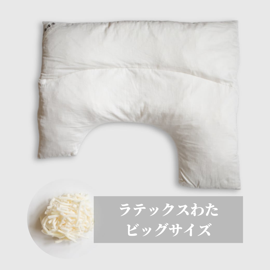 一つ一つハンドメイドで作られたU字型枕は、仰向け時肩添いが良く、頭から首、肩周りまで包み込み心地よい寝心地を実現します。