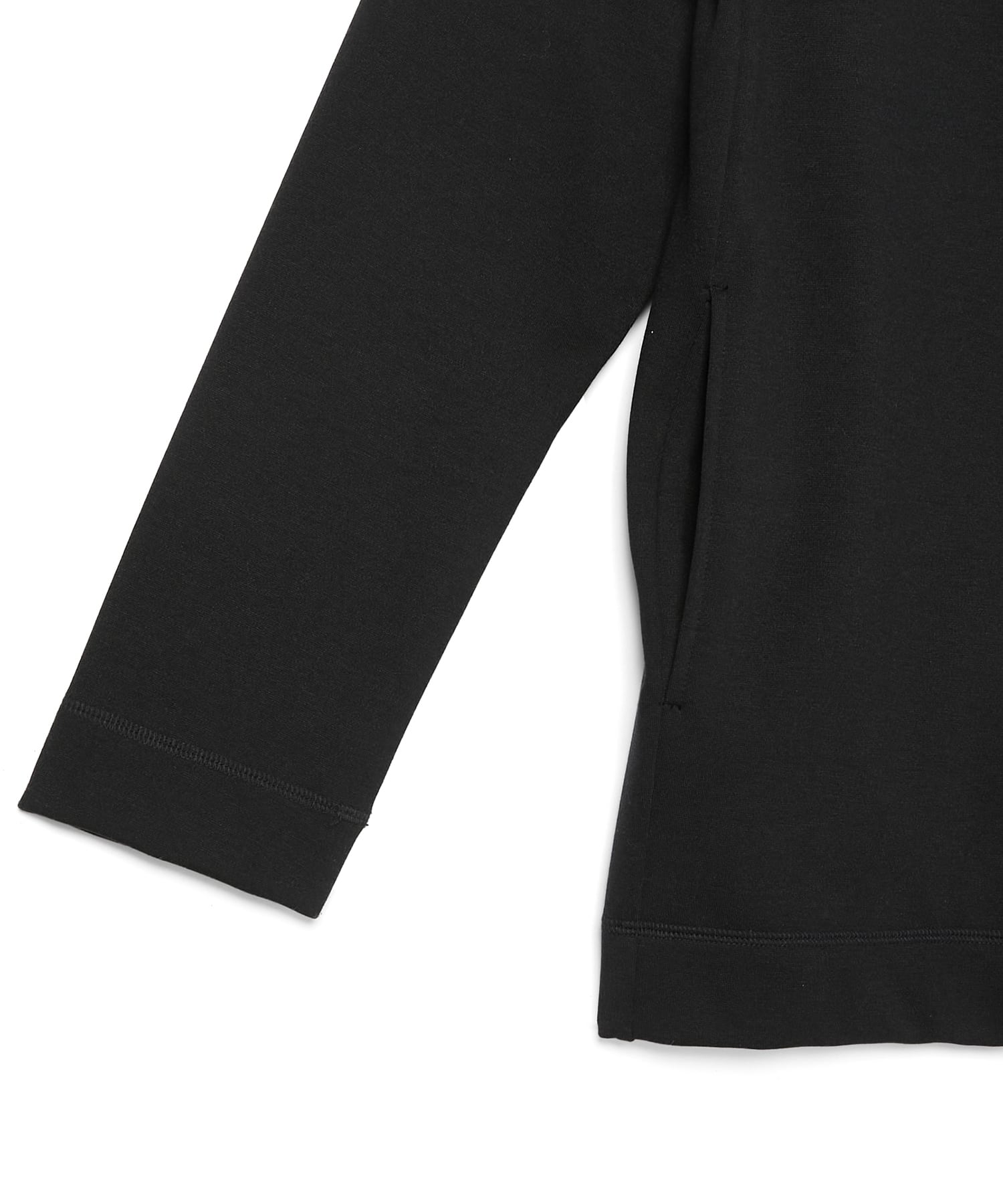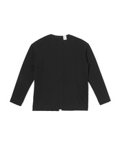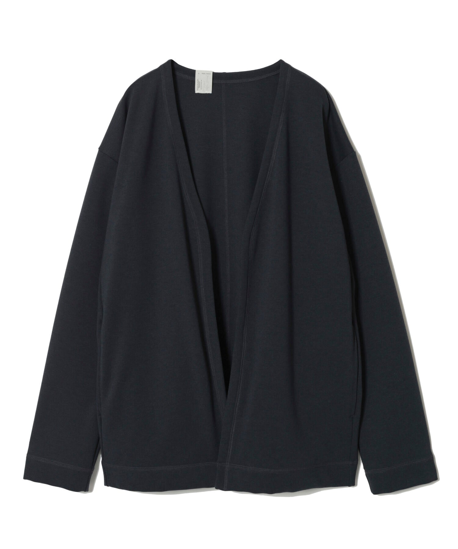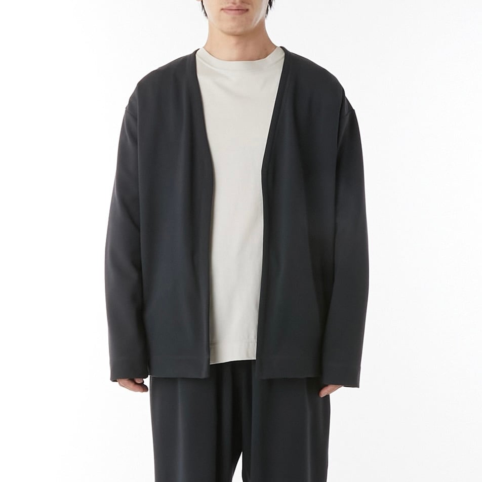ボタンがなく、流れるように落ちる前立てが特徴です。腹部脇に縫い目に沿ってポケットを配してあり、ちょっとしたお出かけにはカバンを必要としません。