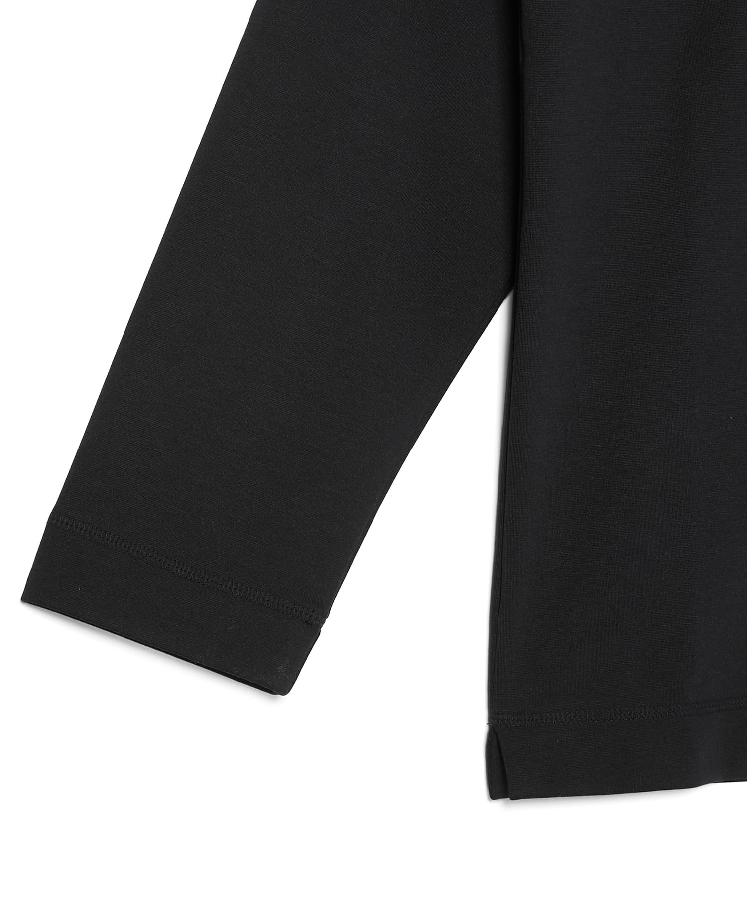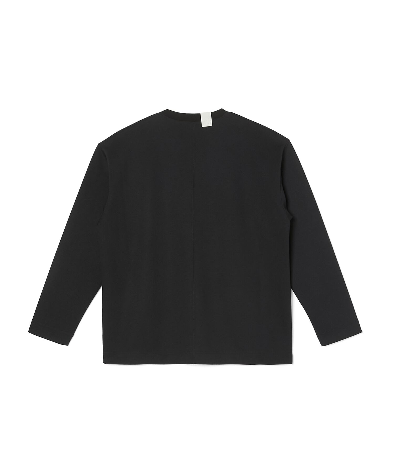 ネックはリブ仕様で、袖口と裾には両振り3本針を採用し、両脇にはスリットを施すことで、細部にまで丁寧な仕立てが感じられる一枚です。背面にはブランドを象徴するセンターバックシームのディテールを加え、さりげないアクセントに。