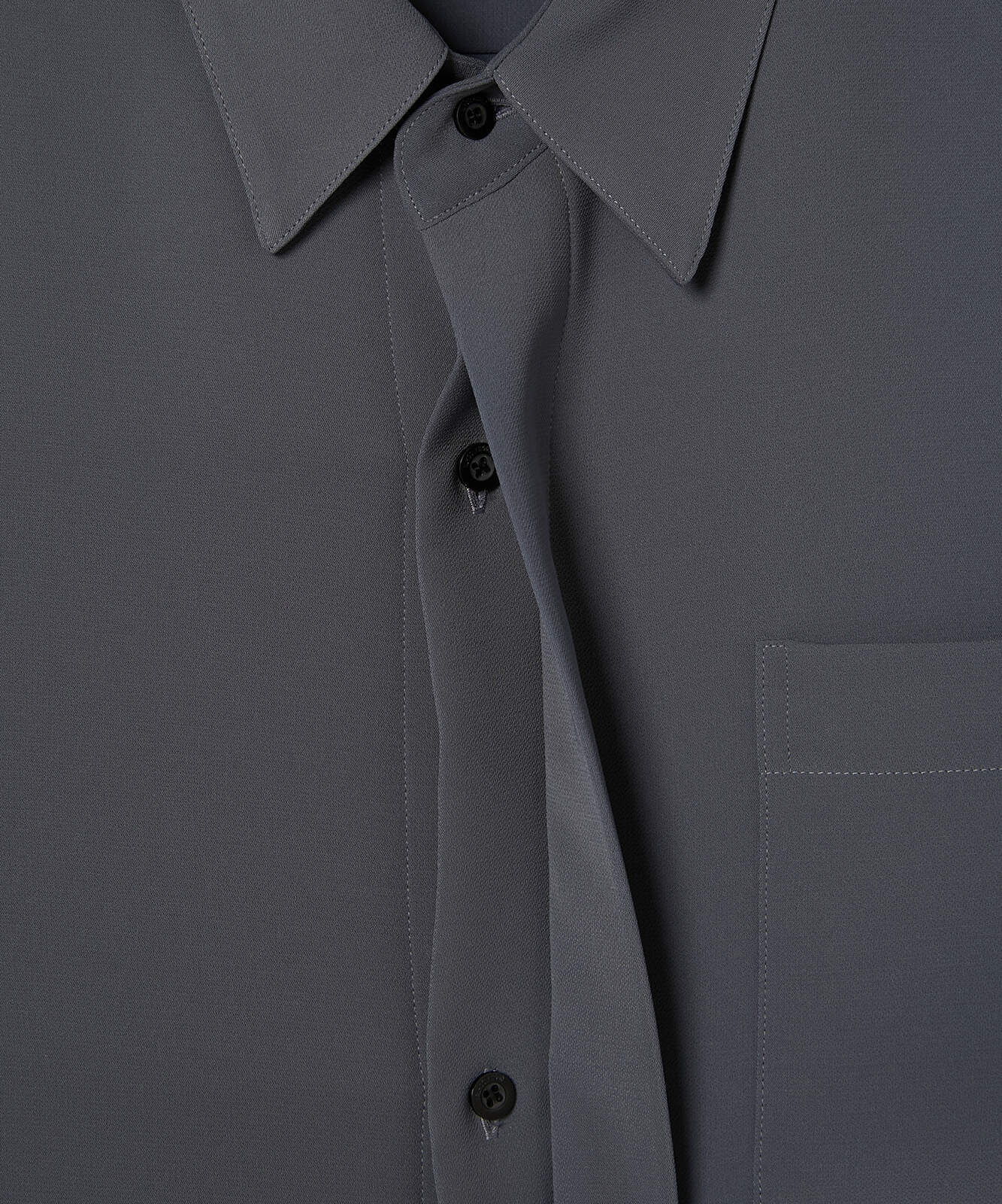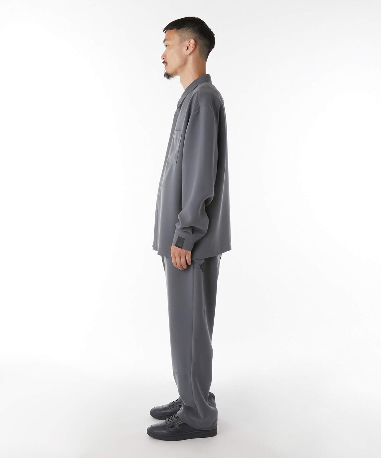 ・ベーシックな比翼仕立てのシャツのパターンを調整することで程よくドレスダウン。
