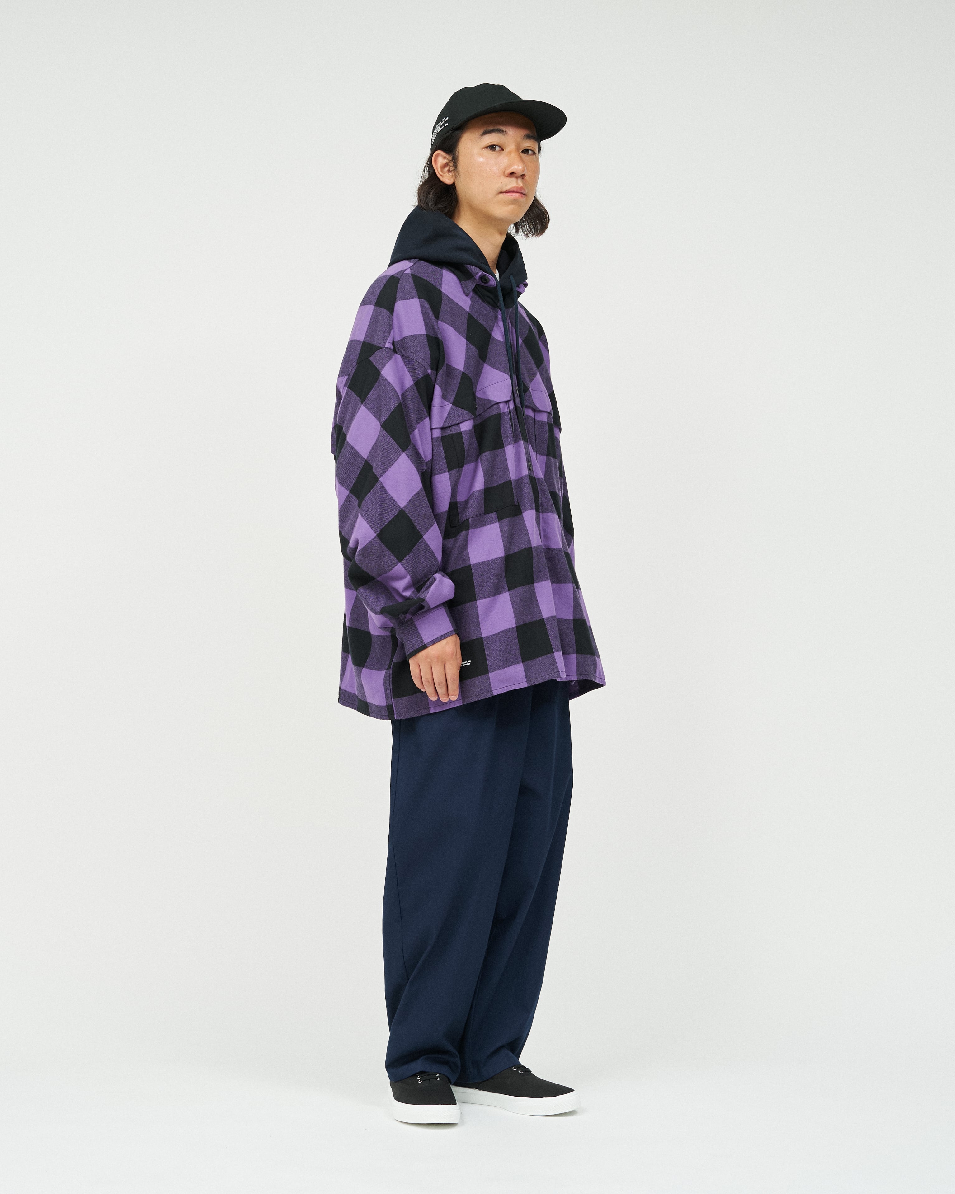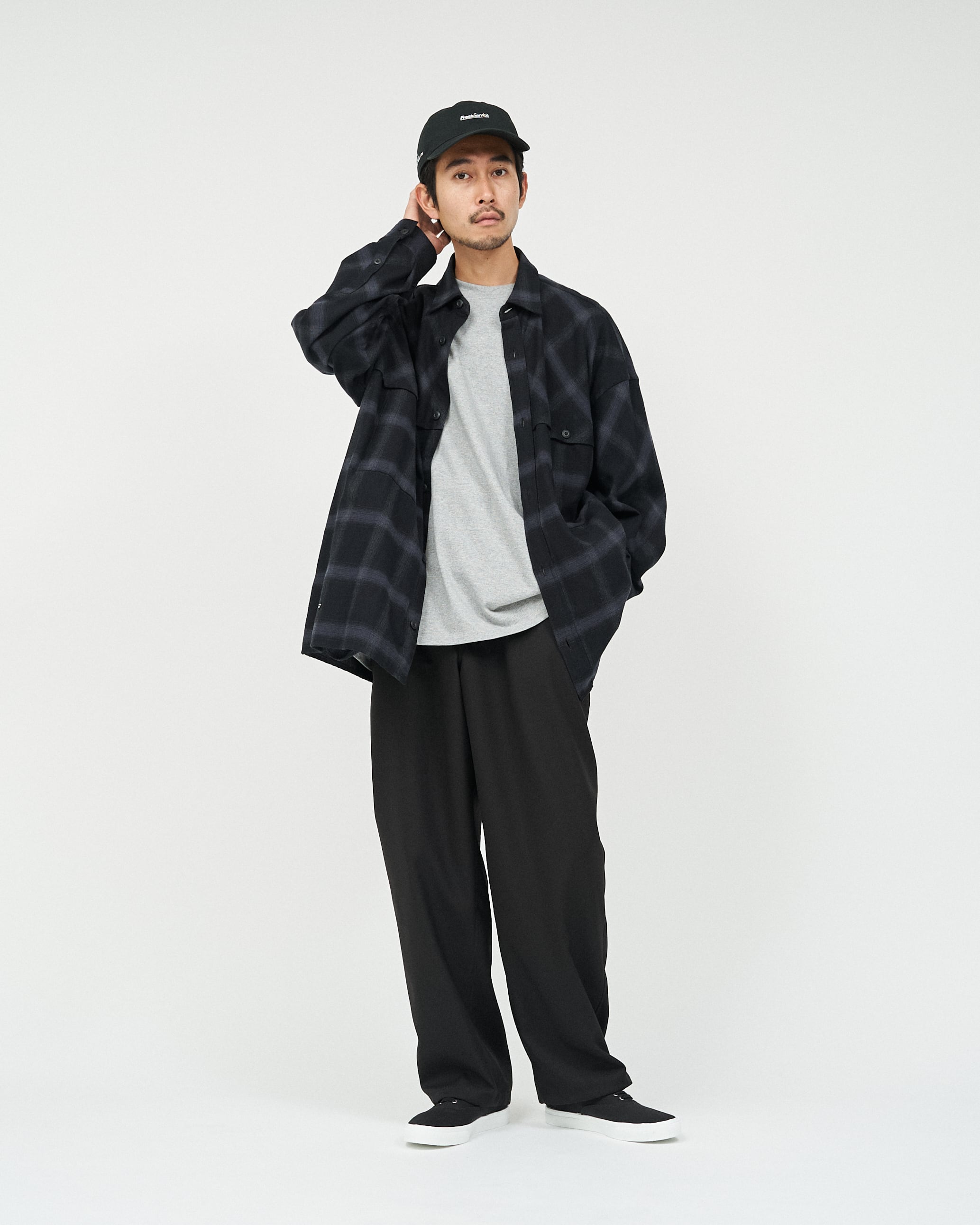 マッキーノから着想を得て、FreshServiceならではのゆったりとしたオーバーサイズシルエットに再構築したフランネルシャツ。大胆なヨーク切り替えに加え、サイドシームポケットを配し、シャツとしてだけでなく軽いアウターとしても活躍する実用的な一枚です。