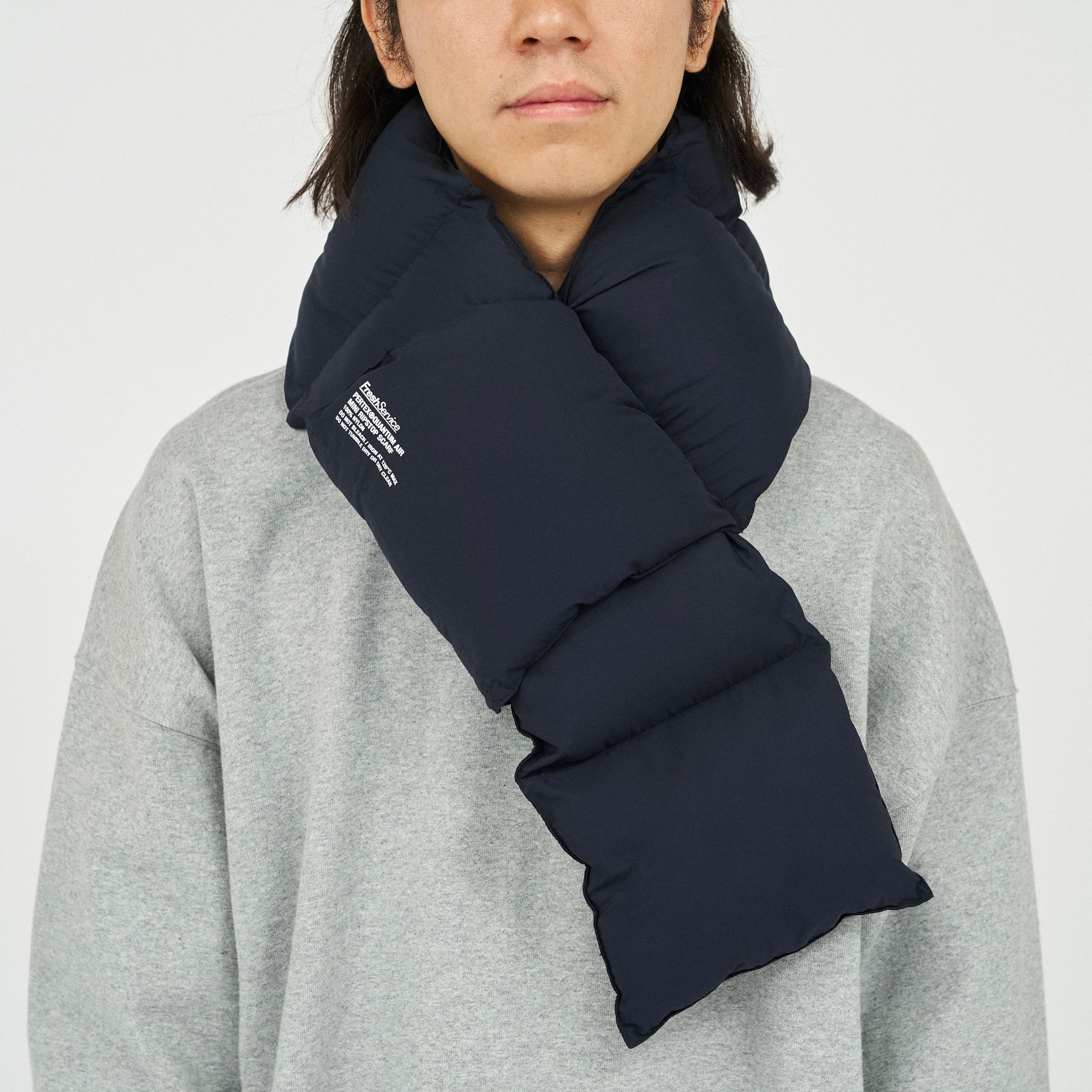 高機能素材《PERTEX® QUANTUM》のミニリップストップ生地を使用した中綿入りのマフラー。
