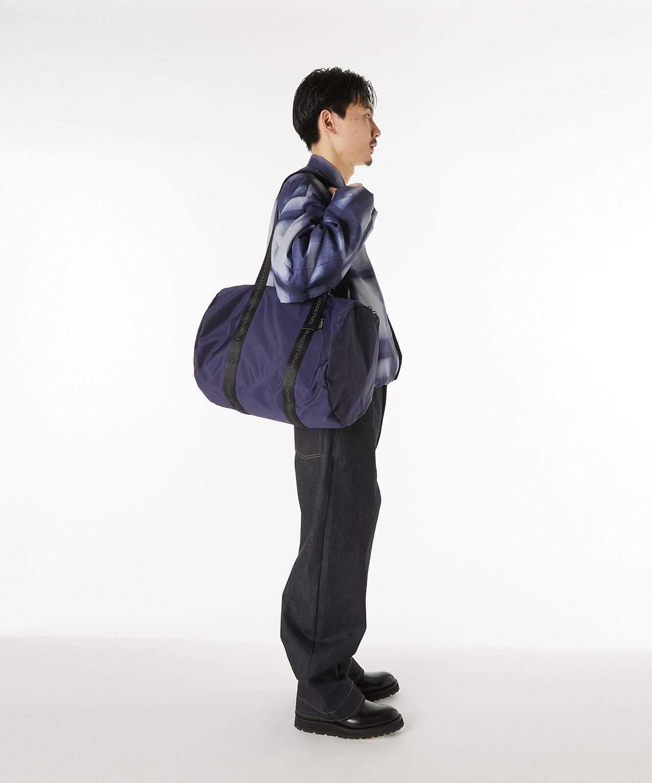 2019年を皮切りにスタートした〈N.HOOLYWOOD COMPILE〉とのコラボレーションから登場した本作は、両ブランドの感性と機能性が融合したボストンバッグ。通常よりも横幅を短く設定し、丸みを帯びたフォルムが特徴です。ストラップには両ブランドのロゴをジャカードで織り込んだオリジナルテープを採用し、細部にまでデザインのこだわりを感じさせます。底面には〈OUTDOOR PRODUCTS〉のロゴ、背面には両ブランドの織りネームを配置。外ポケットに加え、内ポケットも備え、スマートフォンや小物を整理しやすい機能的な構造です。
