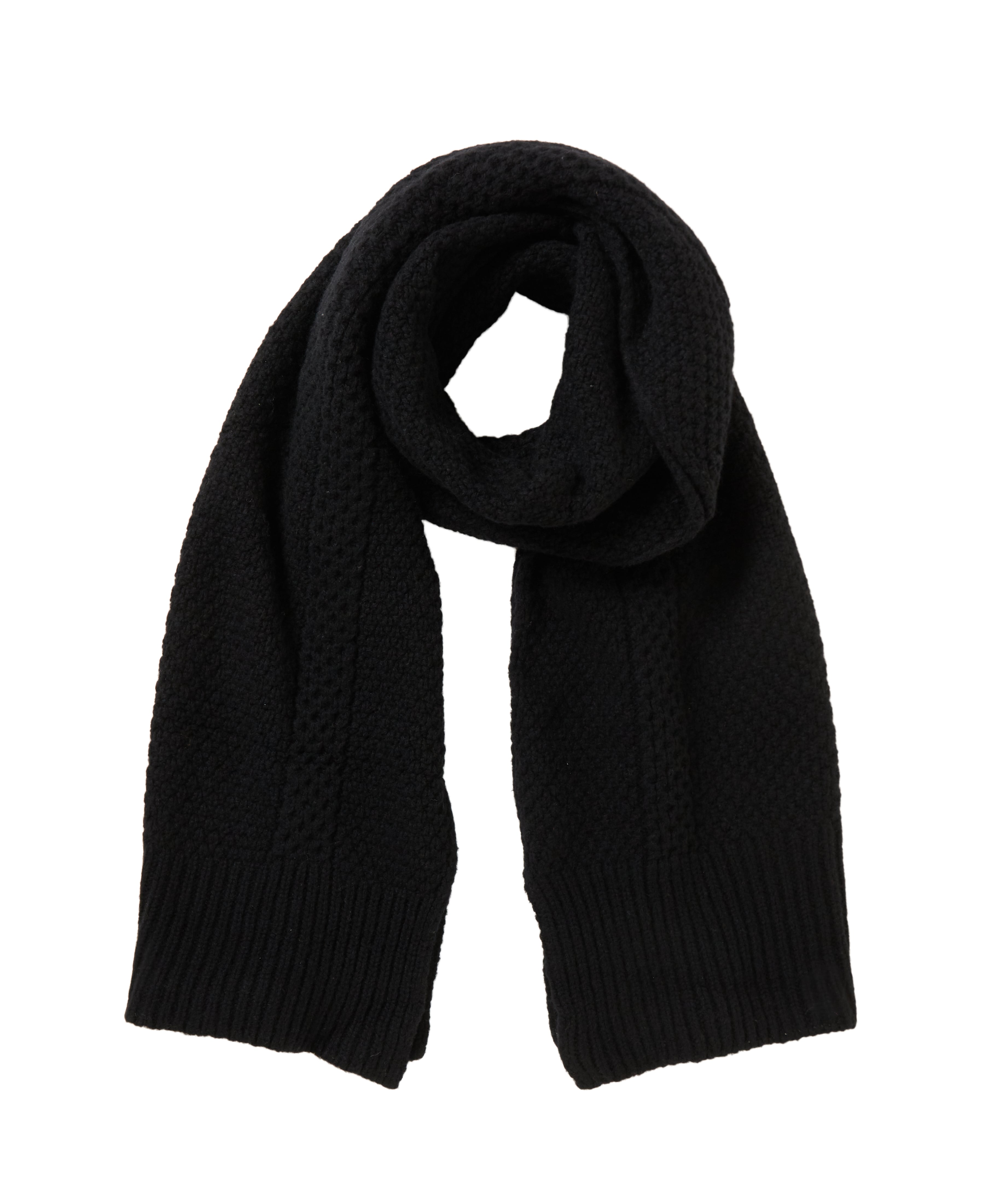 程よいボリューム感で巻きやすいケーブルニットマフラー。