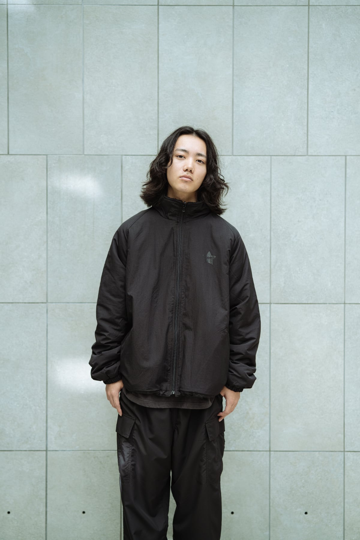 ナイロン面は水滴を弾きやすい素材を使用し、胸元にはNELSPECロゴをプリント。シンプルで合わせやすい表情に仕上げています。