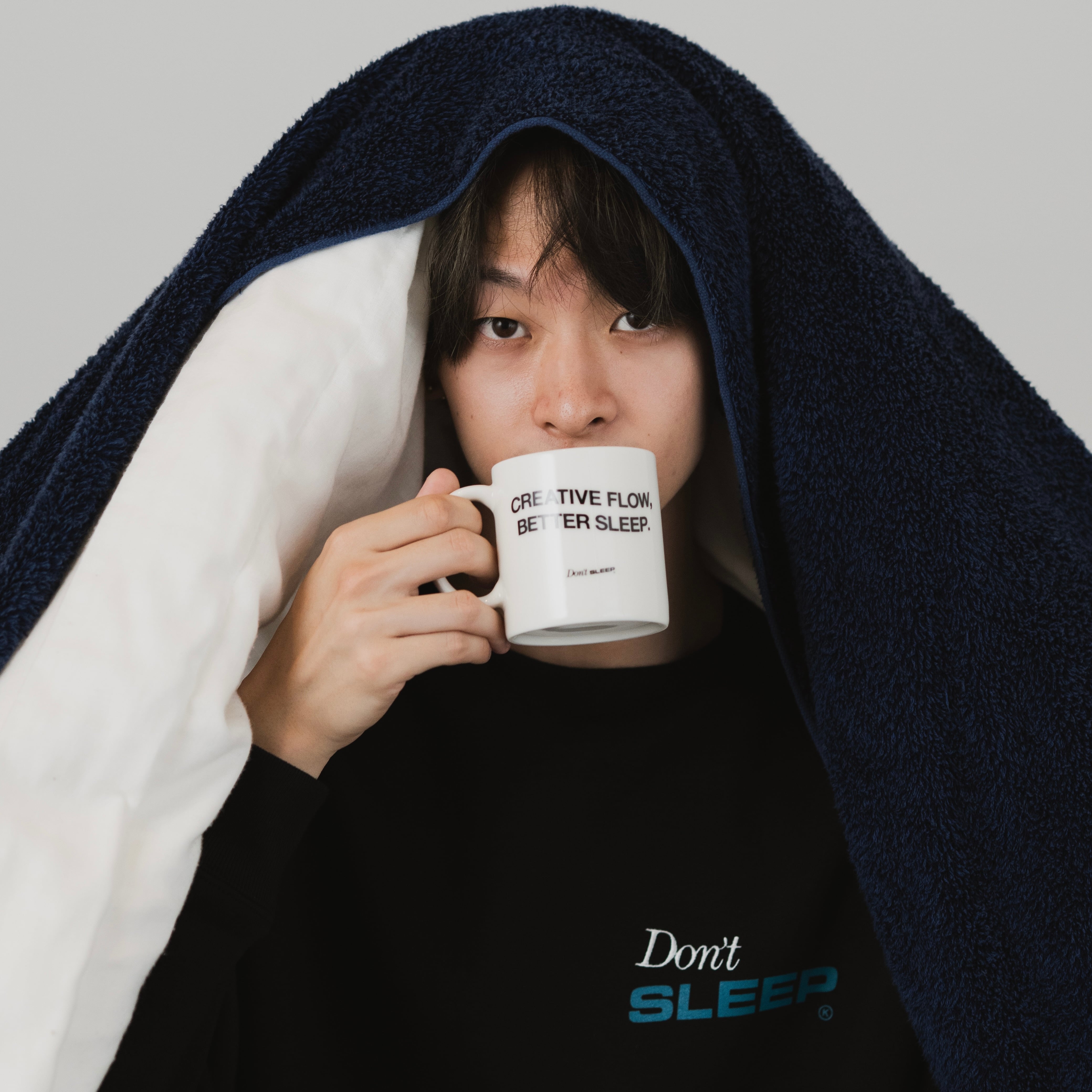 眠りに特化したセレクトショップである眠家 minkaのオリジナルブランドでありながら、「眠るな」という逆説的な言葉を使用したブランドネームがユニーク。夜ぐっすり眠るために、日中の活動時間を充実させよう、という意味での「眠るな=DON'T SLEEP」というメッセージが込められています。