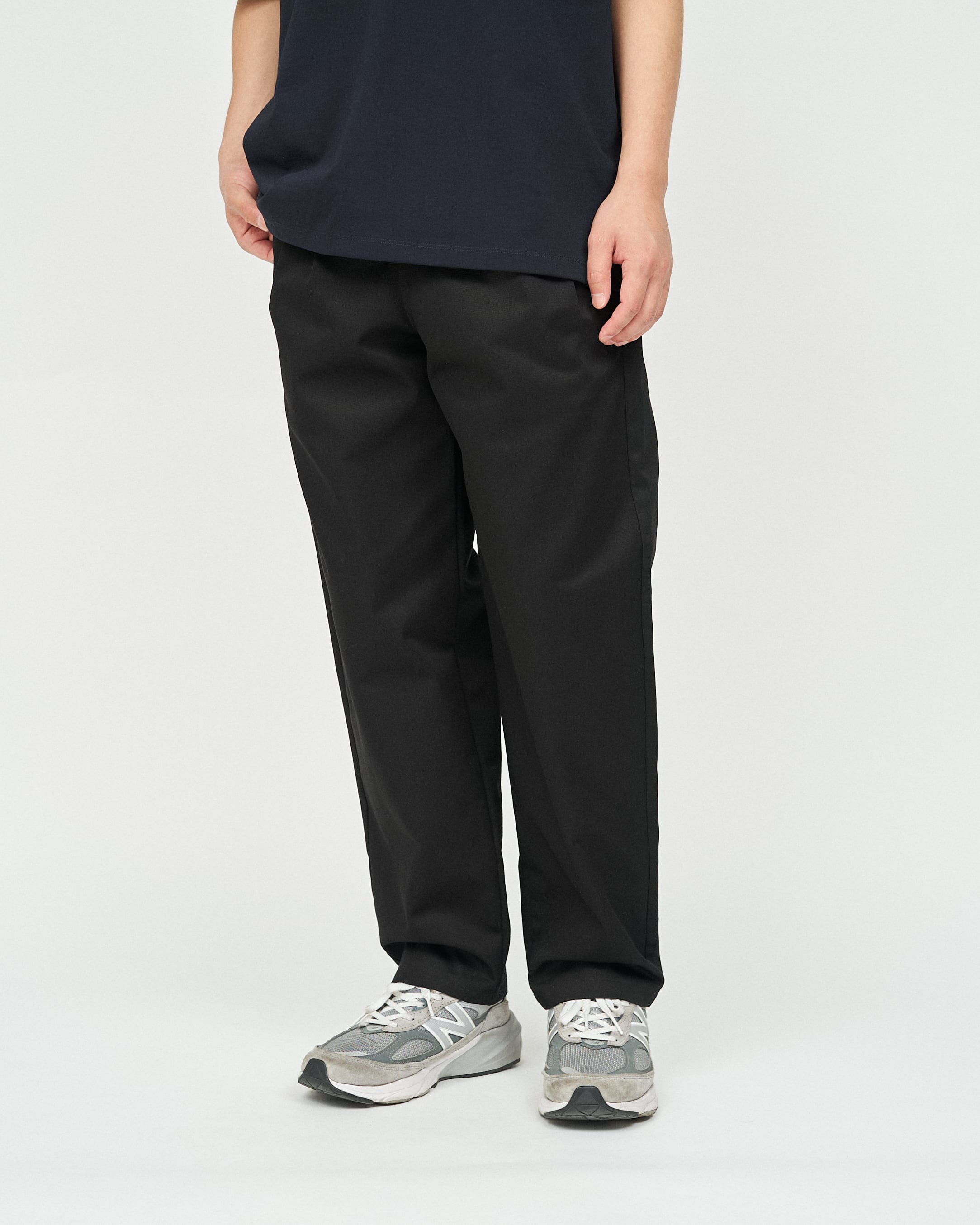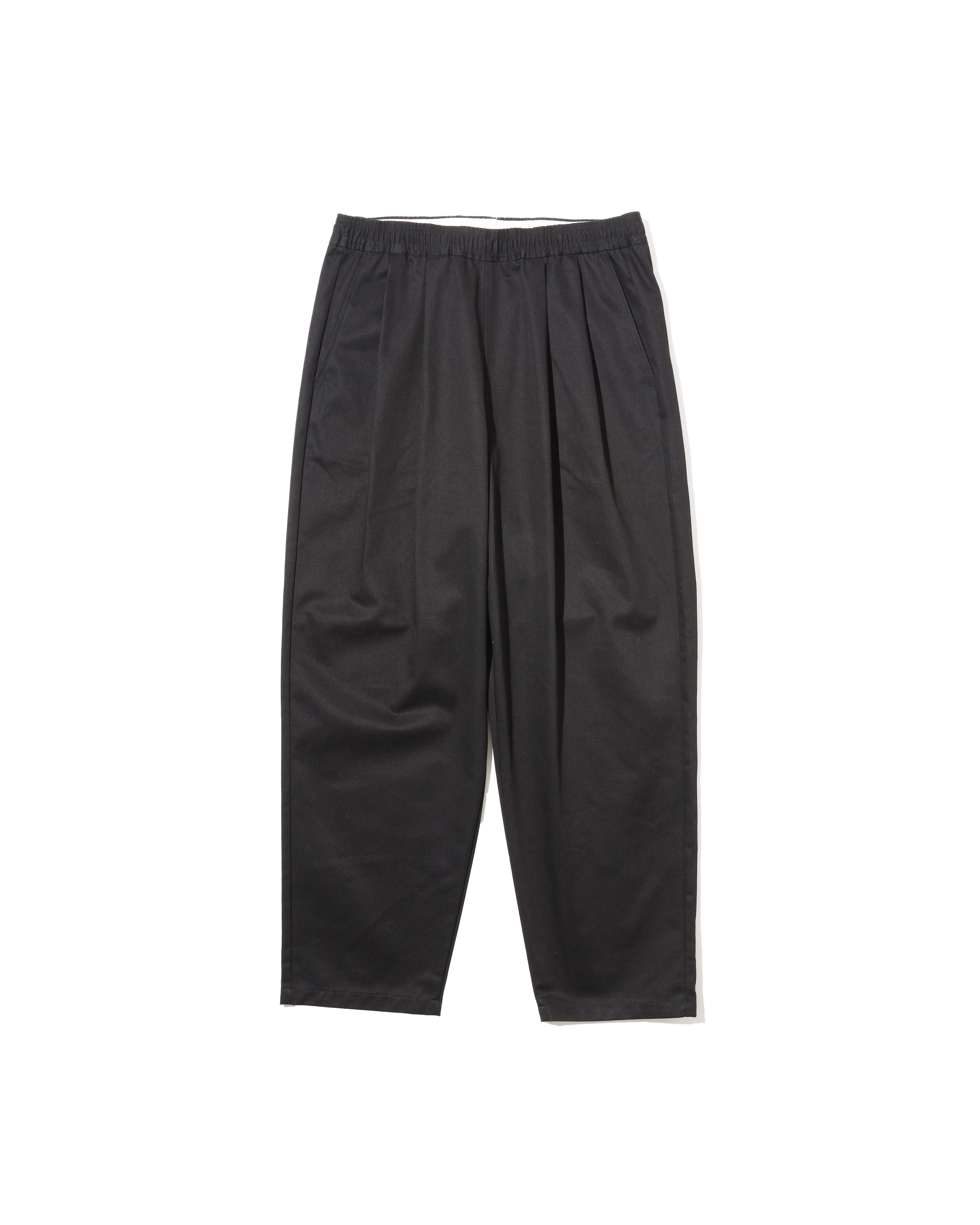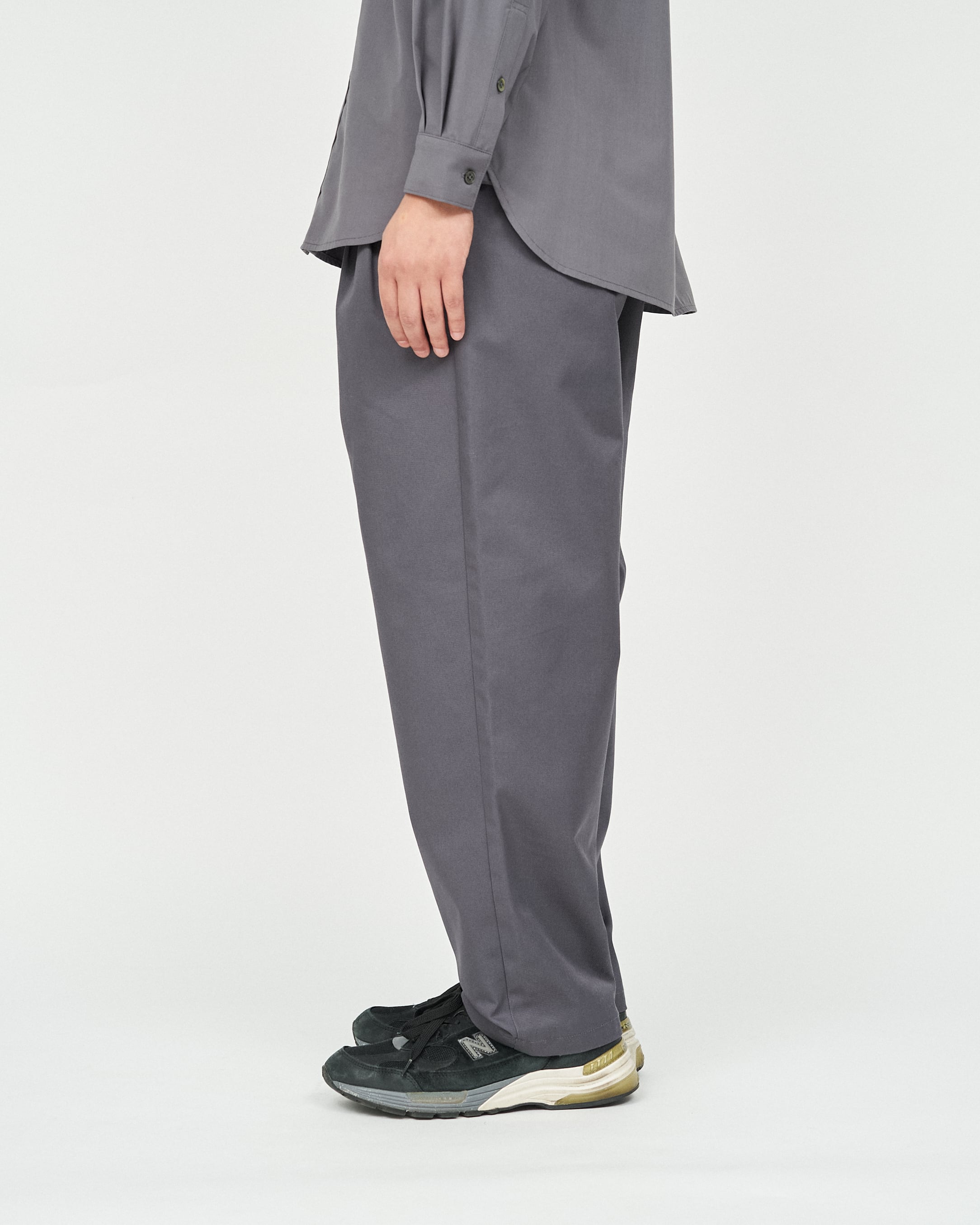 フロントにはタックを取り、ウエストにはゴムを配したゆったりめのシルエット。長時間の着用でもストレスを感じにくく、ほどよいリラックス感があります。