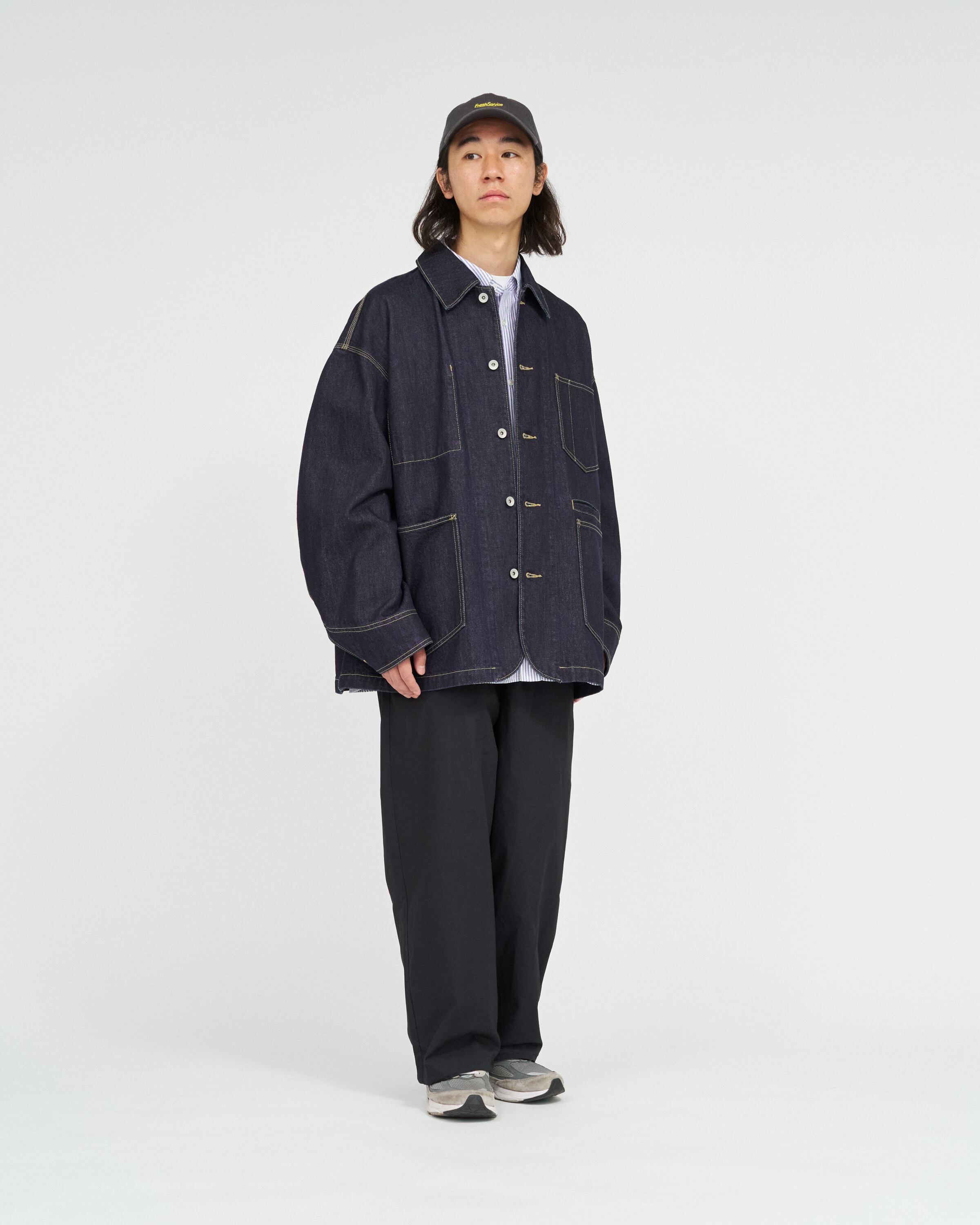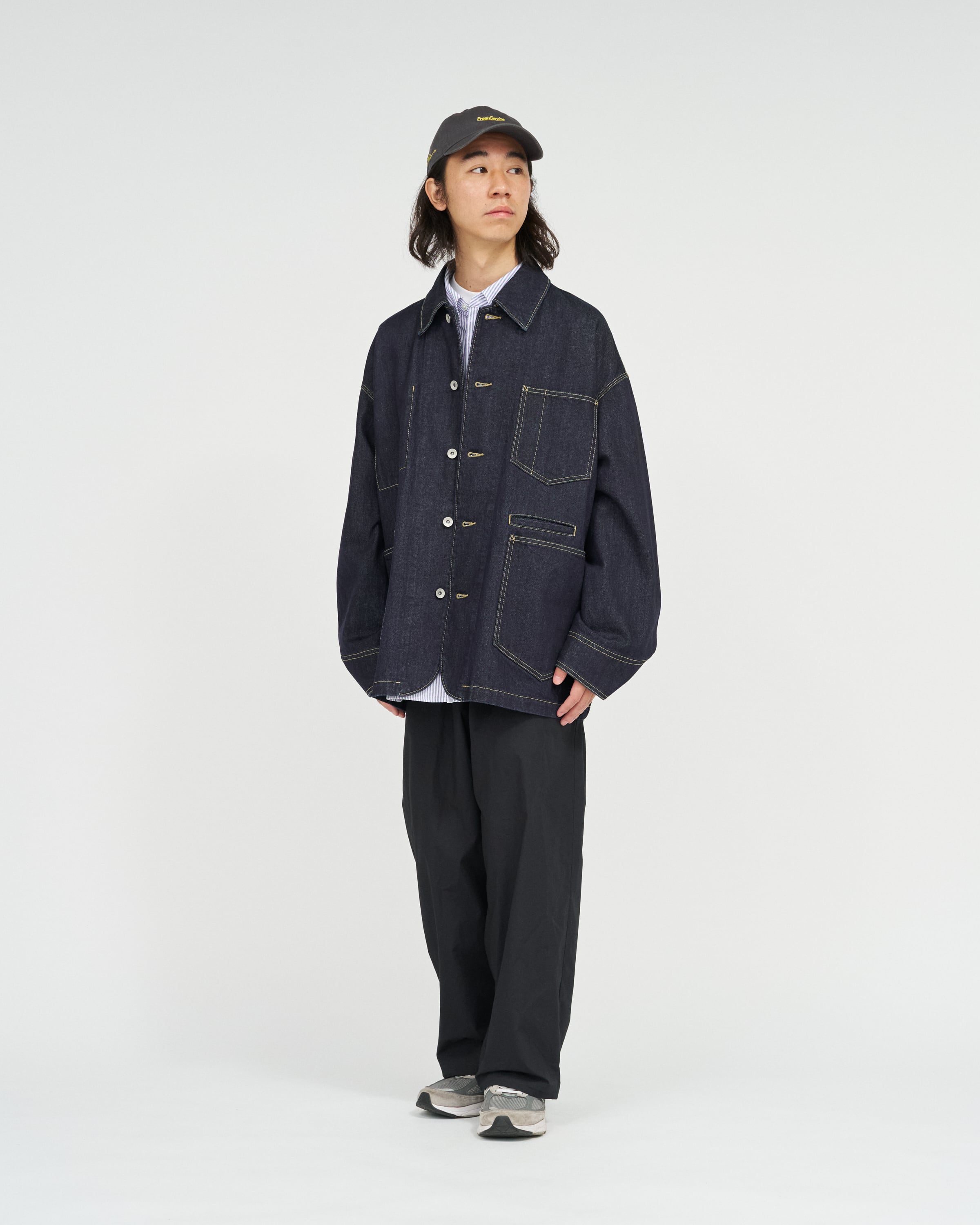 しっかりとした生地感ながら、ドロップショルダーのゆったりとしたシルエットで、FreshServiceらしい抜け感のあるバランスに仕上げています。