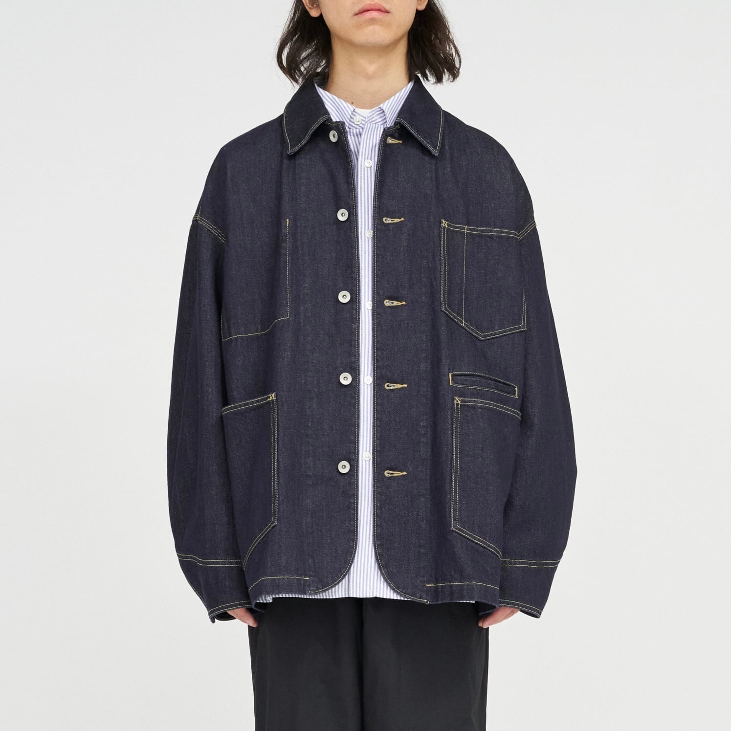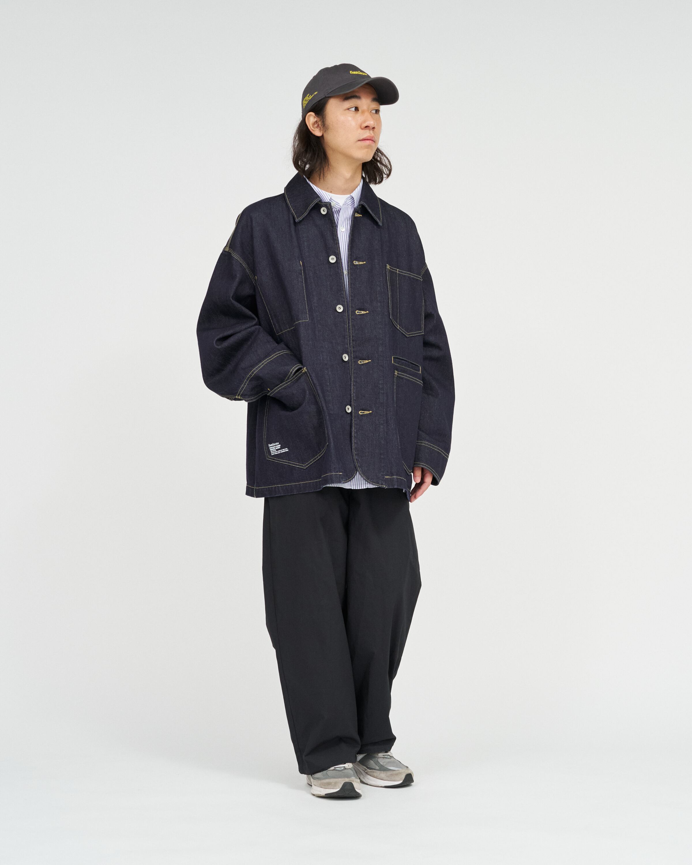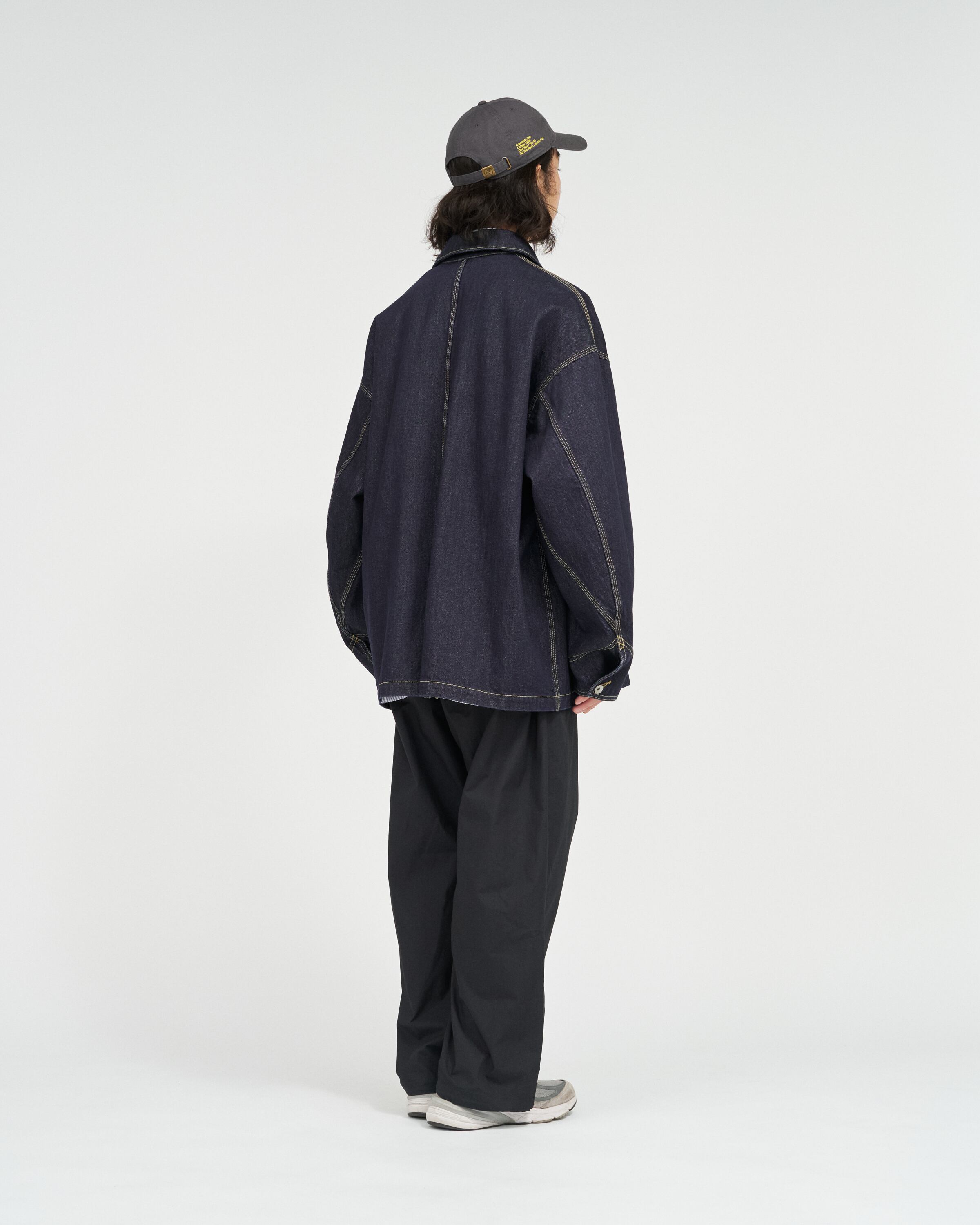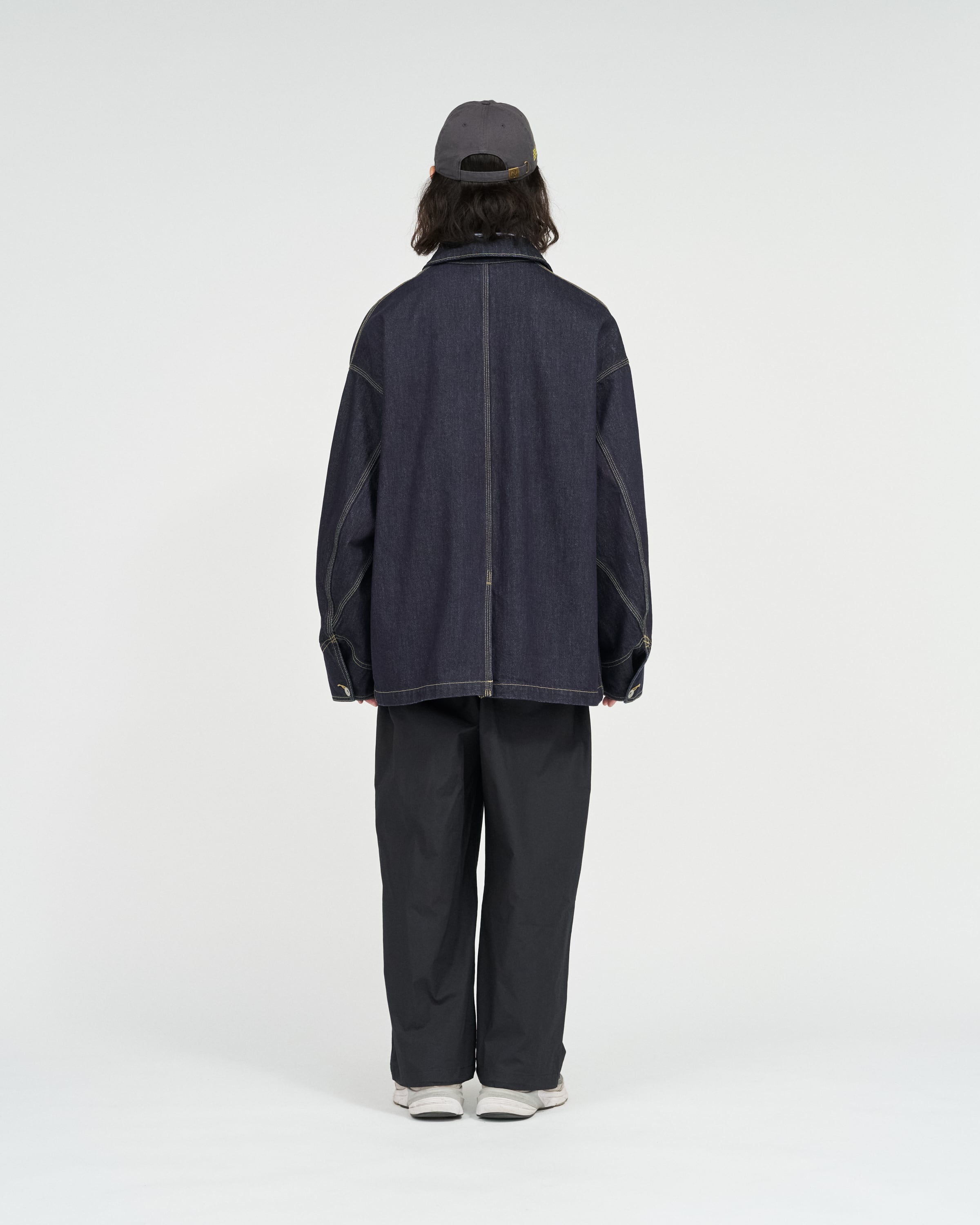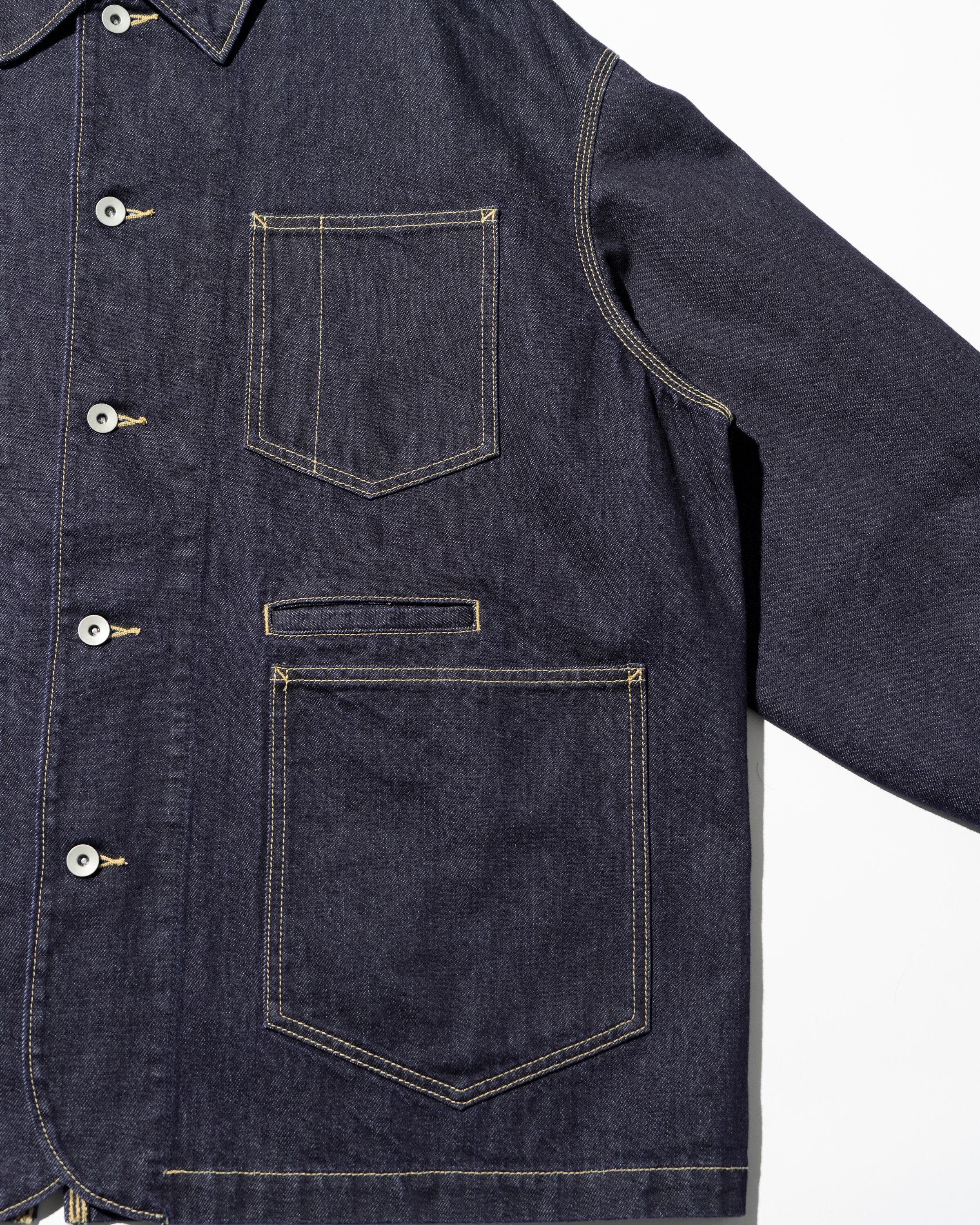 ベースは往年のワークジャケット。そこに スマートフォンポケットなどの現代的な機能ディテール を加えることで、街に馴染む実用性とミニマルなデザインを両立。
