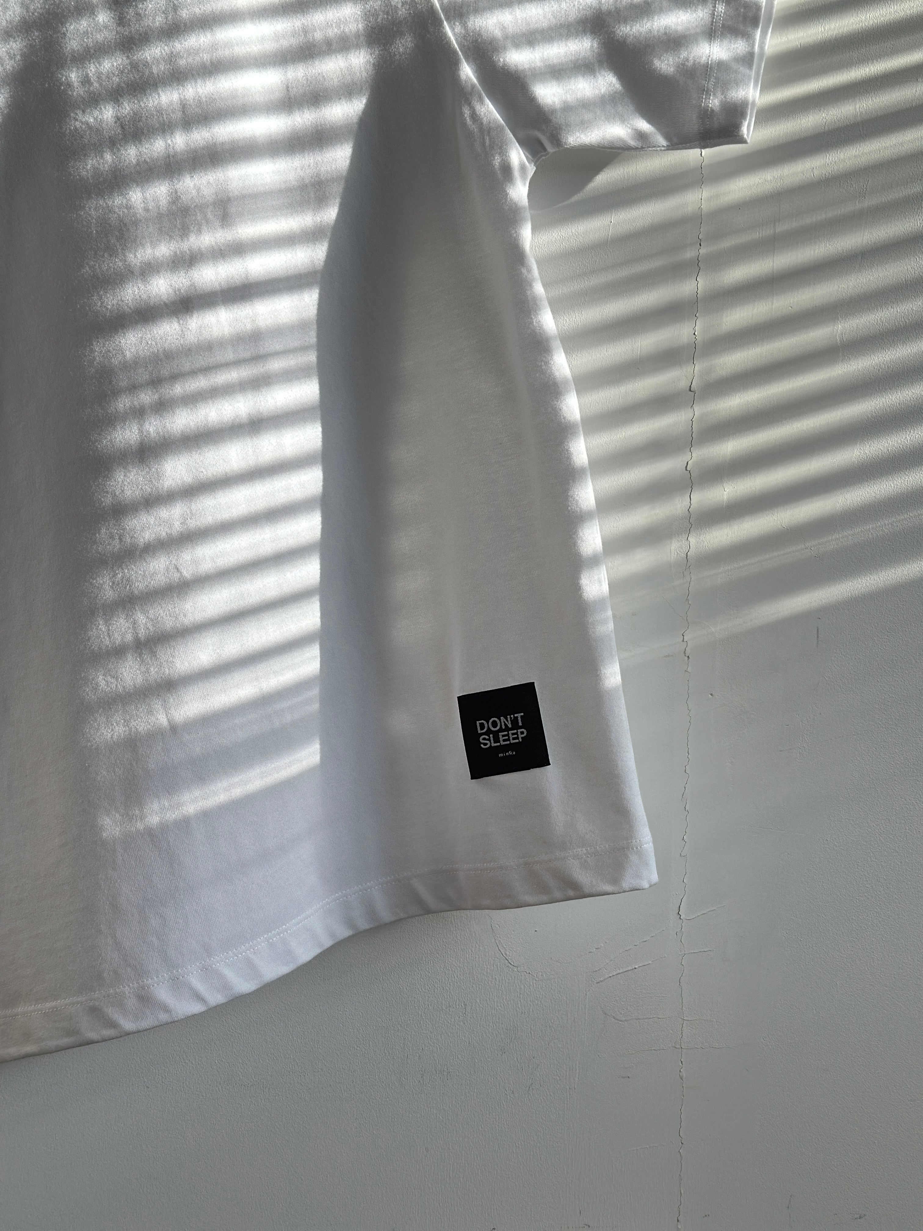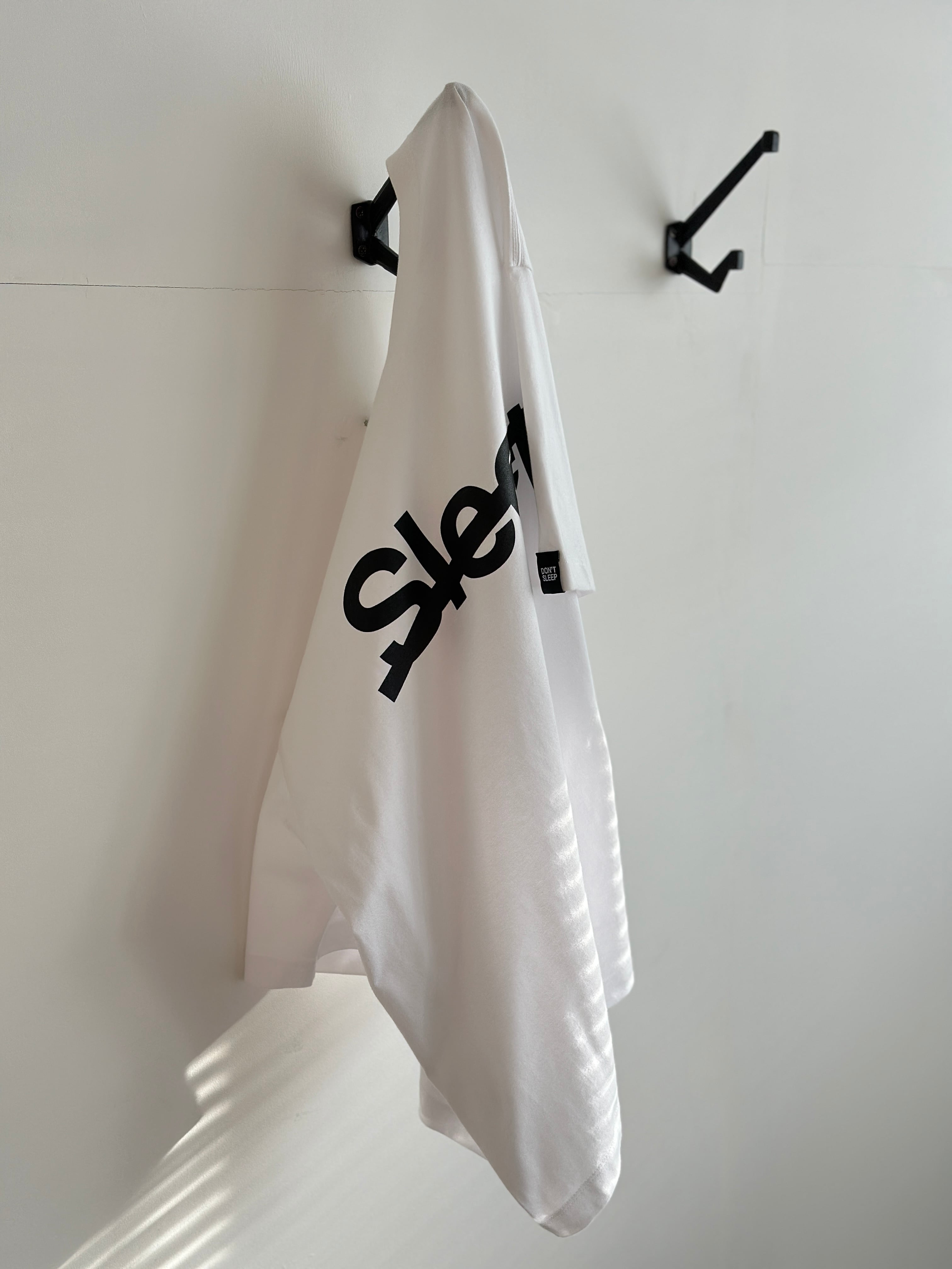 定番のSleep SlashロゴをあしらったモノトーンTシャツ。