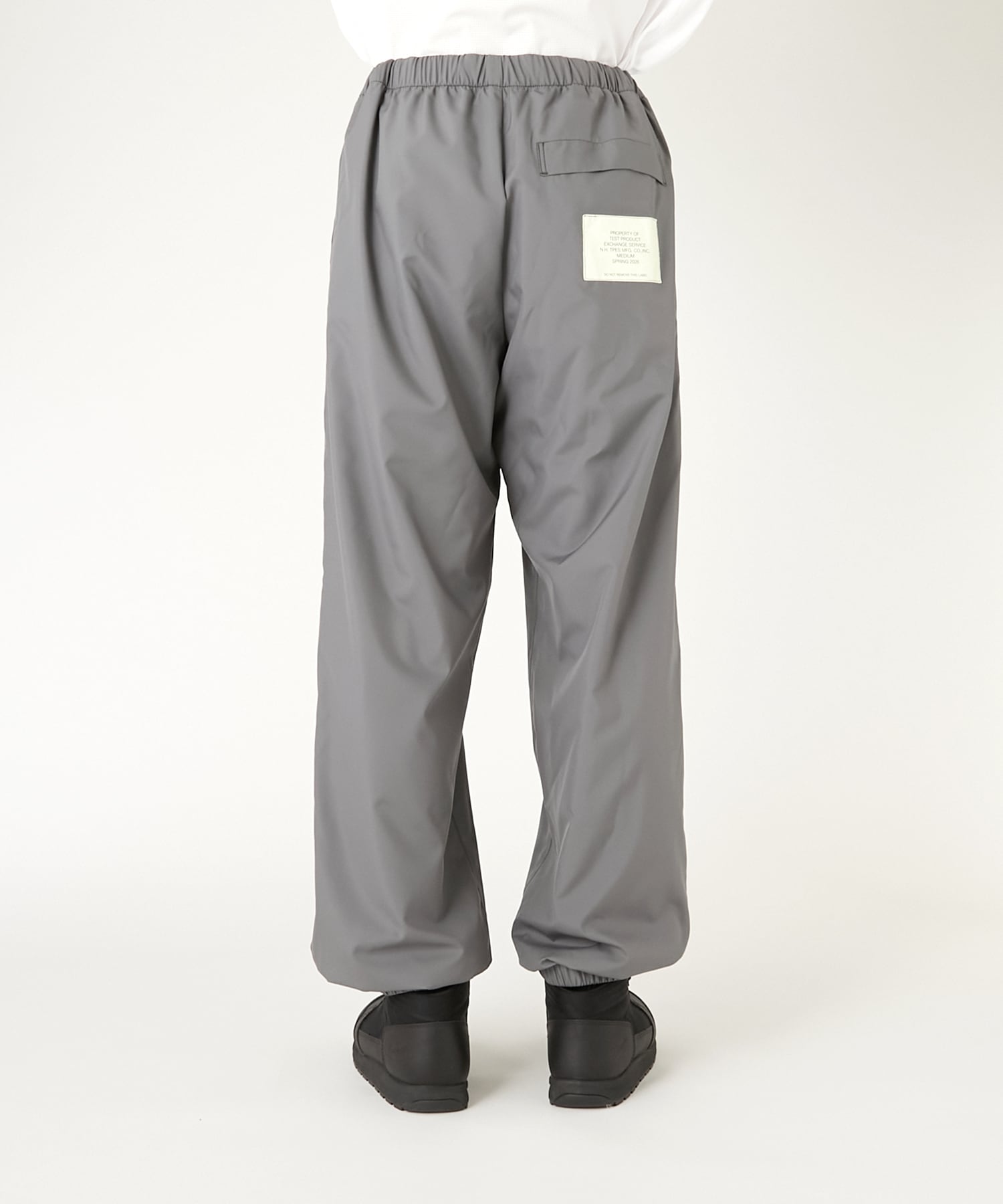 ウエストはゴム仕様にドローコードとフロントファスナーを備え、リラックス感と実用性を両立しています。フロントには箱ポケットを配置し、右ヒップポケットにはオリジナルのミルスペックを付属。総裏はメッシュ仕立てとし、裾には平ゴムを内蔵することで、軽快な穿き心地に仕上げています。