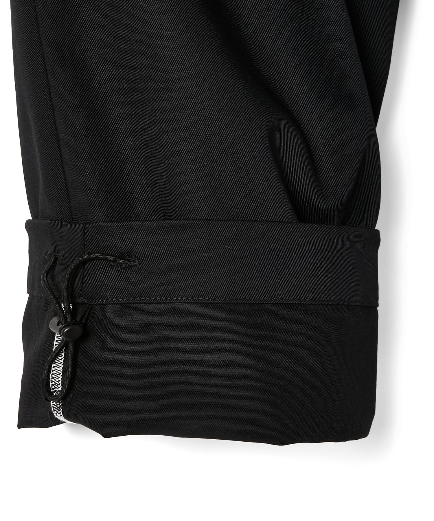 裾にはスピンドルを内蔵し、絞ることで表情を変えられる可変的な設計を採用。フロントはホック仕様とし、裏面のロック始末には当時を想起させるホワイト糸を使用するなど、ヴィンテージへの敬意を感じさせるディテールを随所に落とし込んでいます。