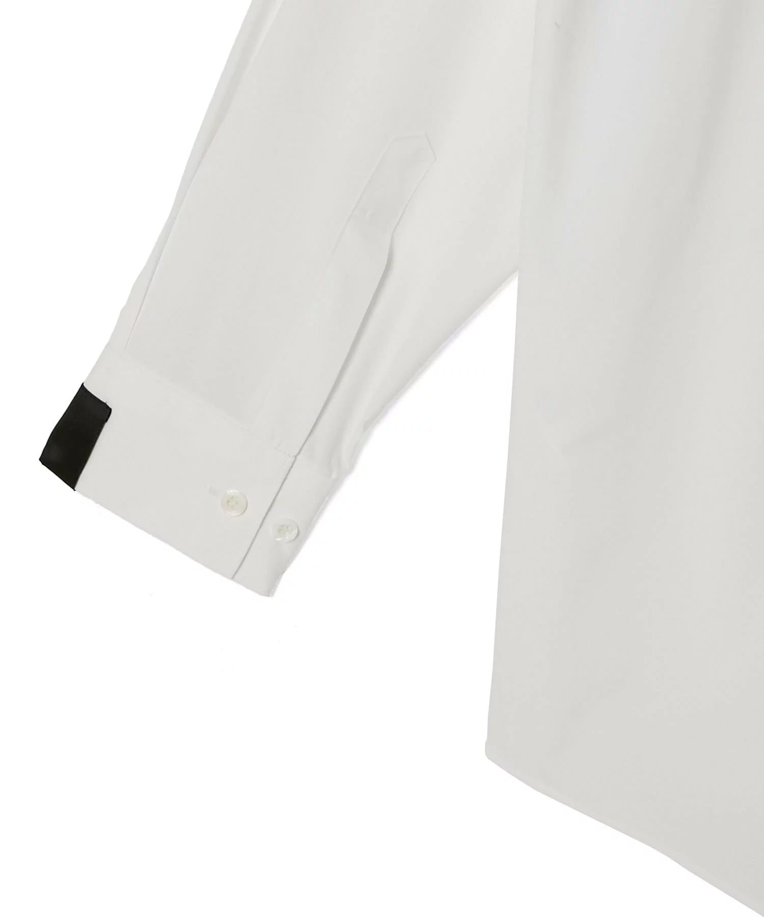 ・硬めのカラーキーパーを襟に内蔵し、よりドレッシーな印象に。シングルカフス仕様、左袖にはN.HOOLYWOOD COMPILEのアイコンであるブラックのブランドネームを配置。