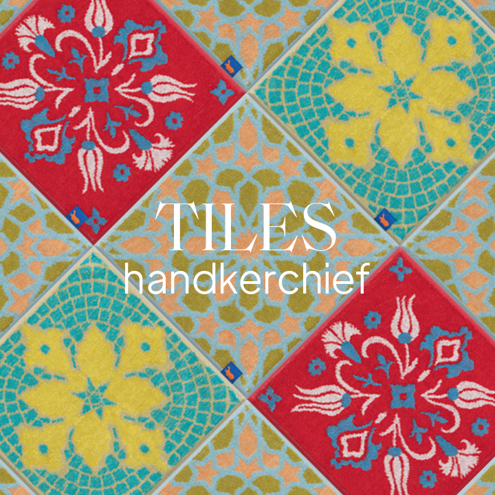 ブランドのベストセラーアイテムであるハンカチーフタオルに落とし込んだ新シリーズは、「タイルをまとう」という発想から生まれたカラーリングと柄が特長です。
