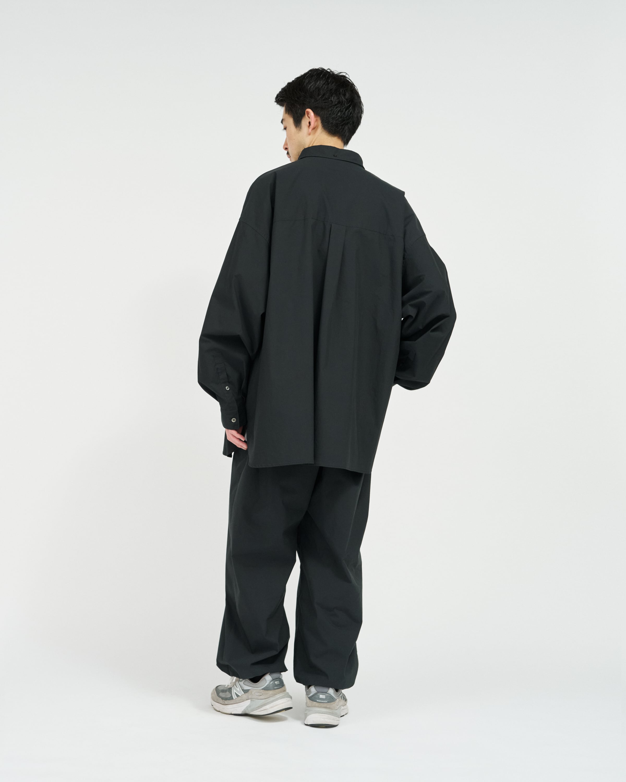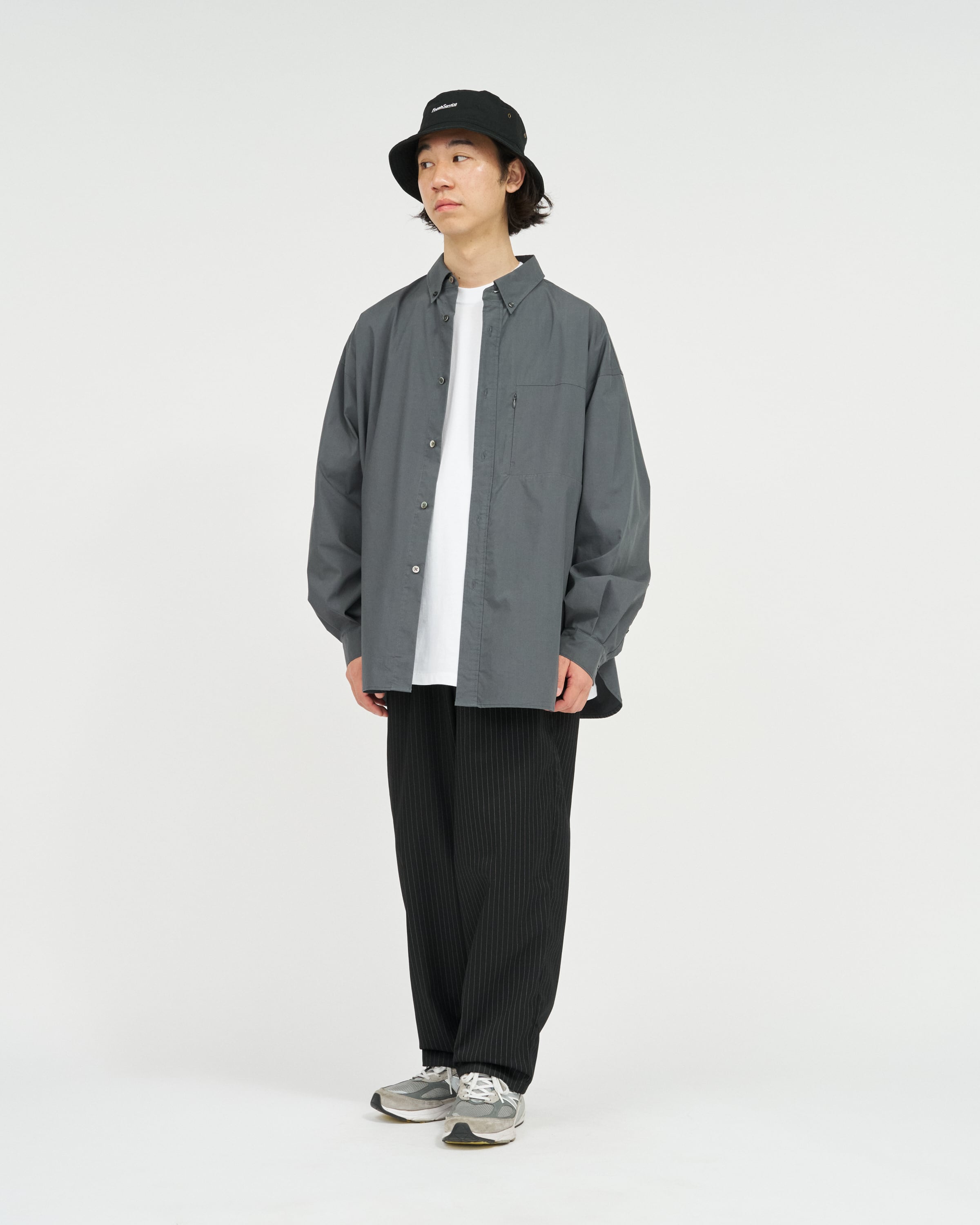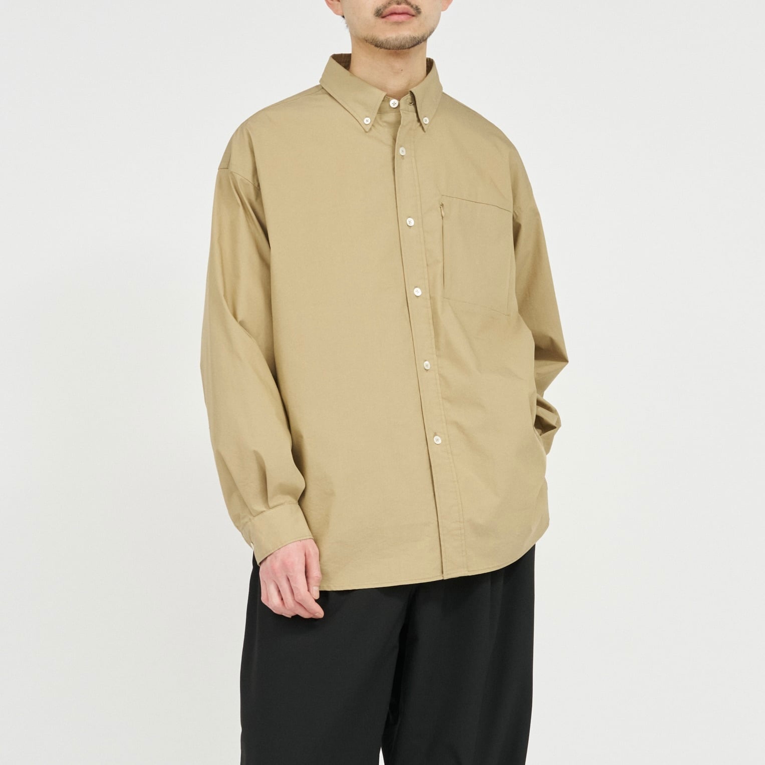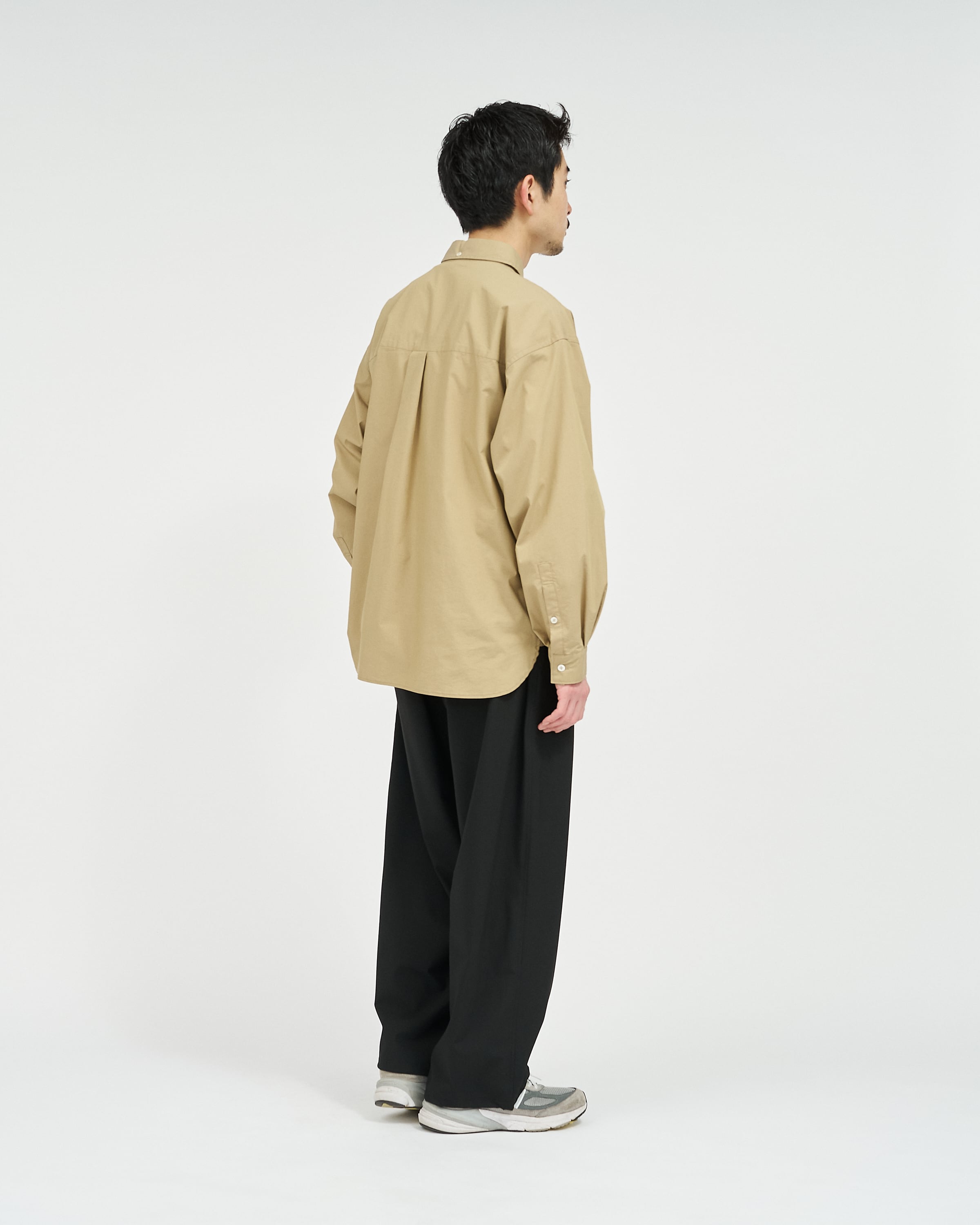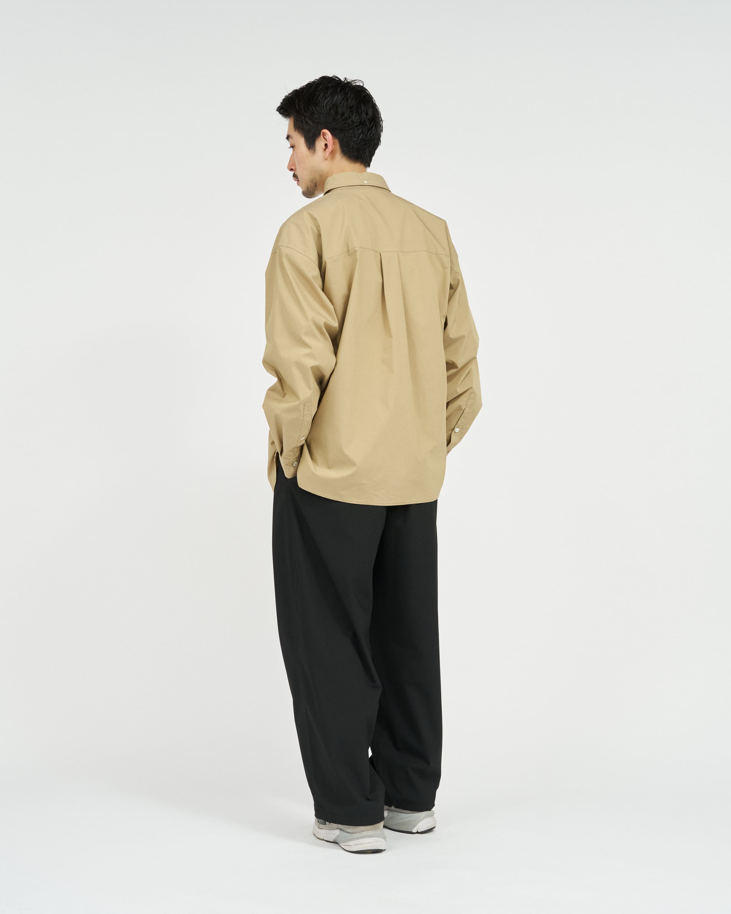 ドロップショルダーのゆったりとしたシルエットが印象的な、ユーティリティ仕様のボタンダウンシャツ。