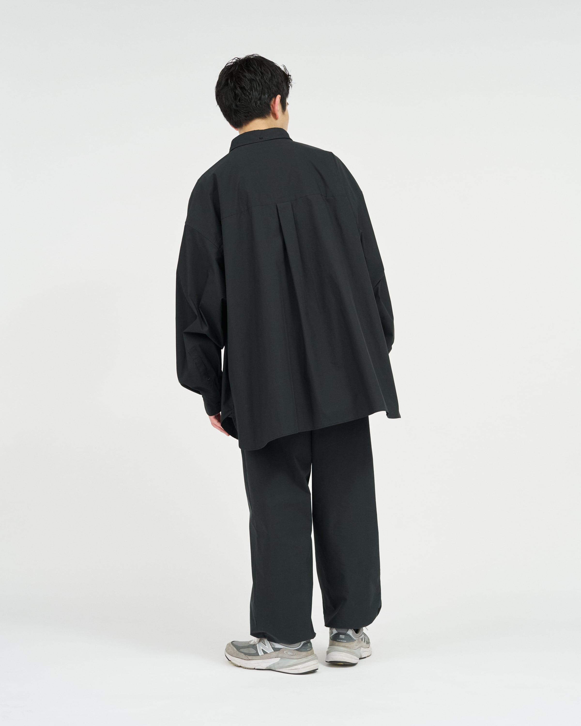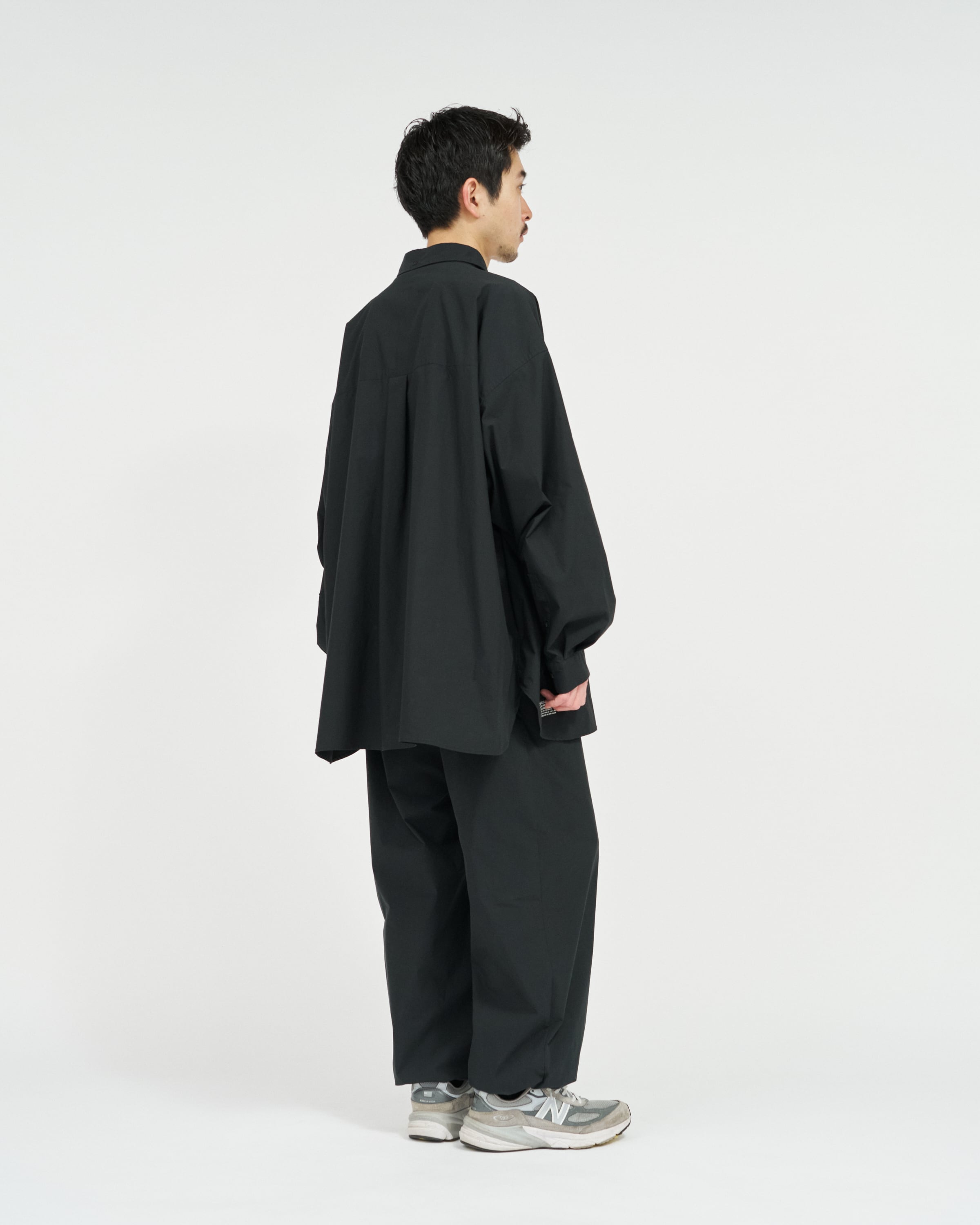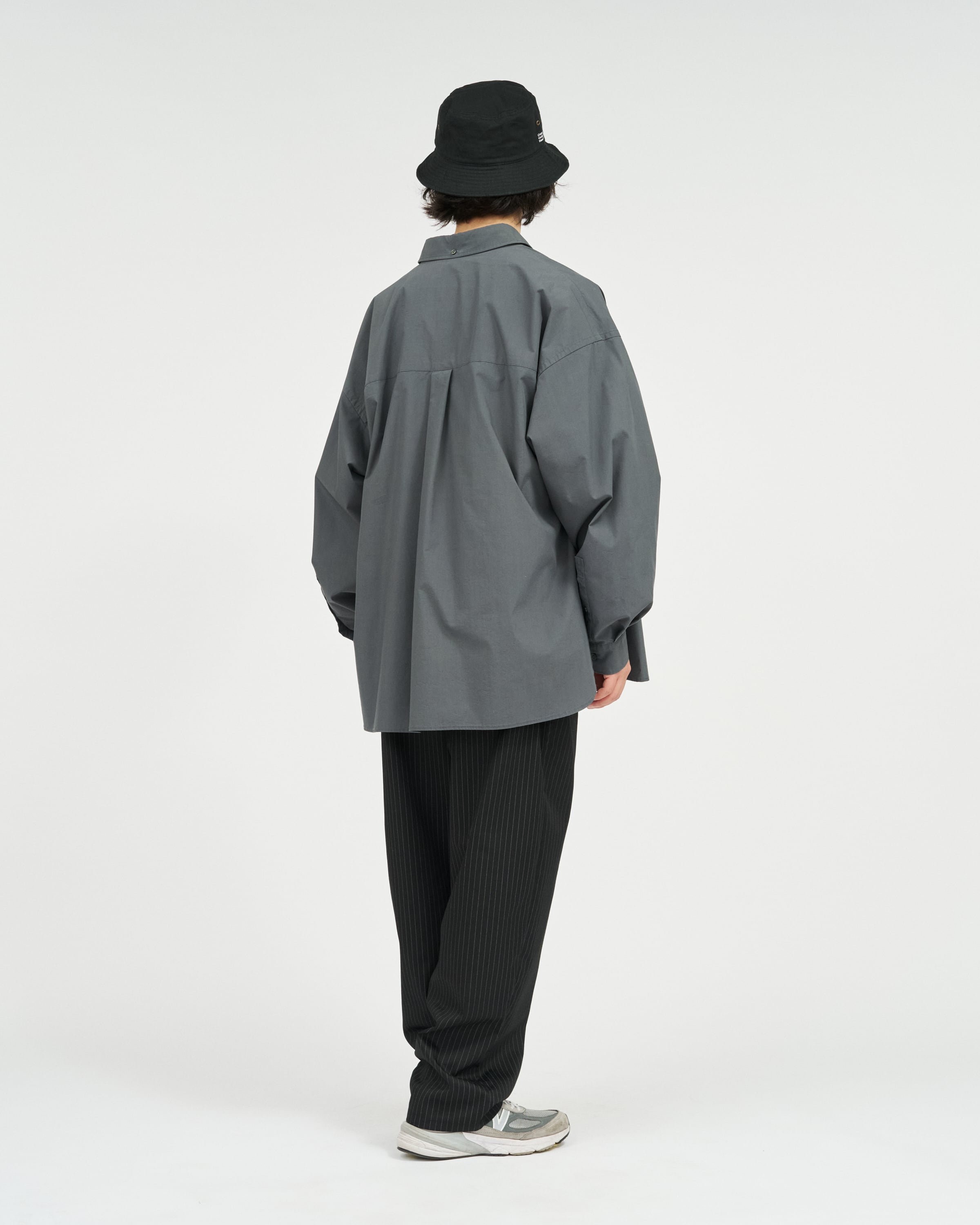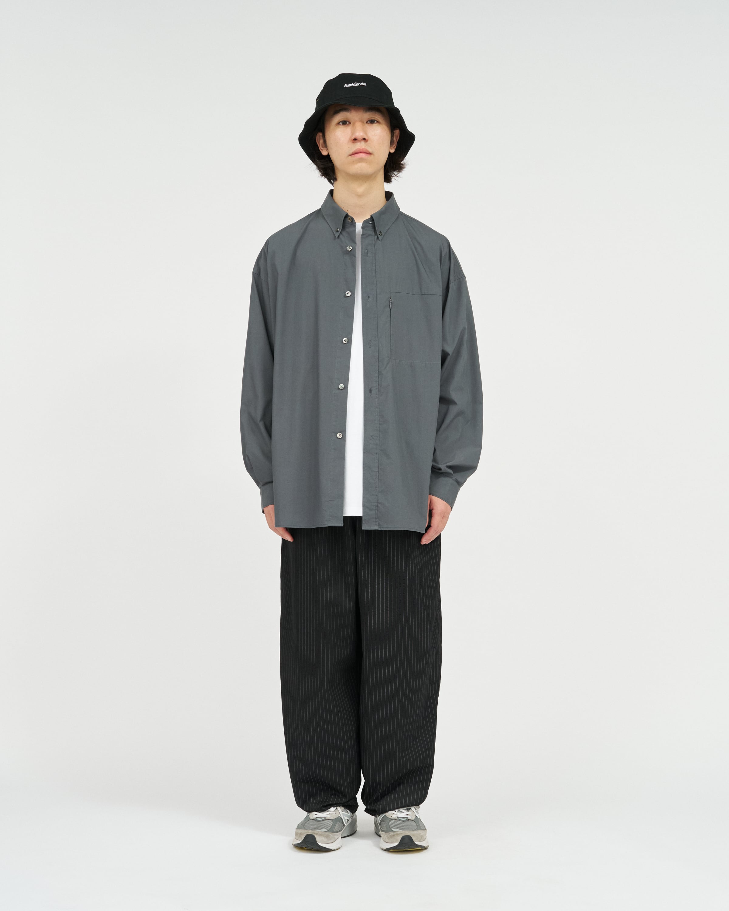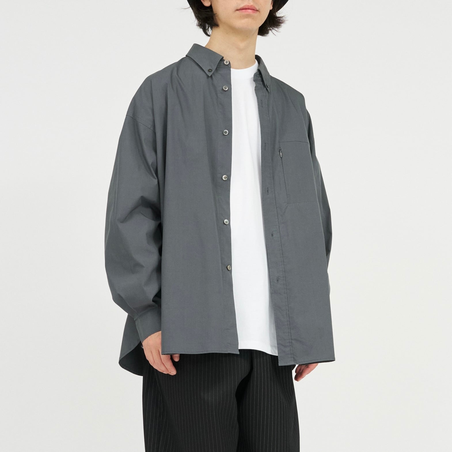 ドロップショルダーのゆったりとしたシルエットが印象的な、ユーティリティ仕様のボタンダウンシャツ。