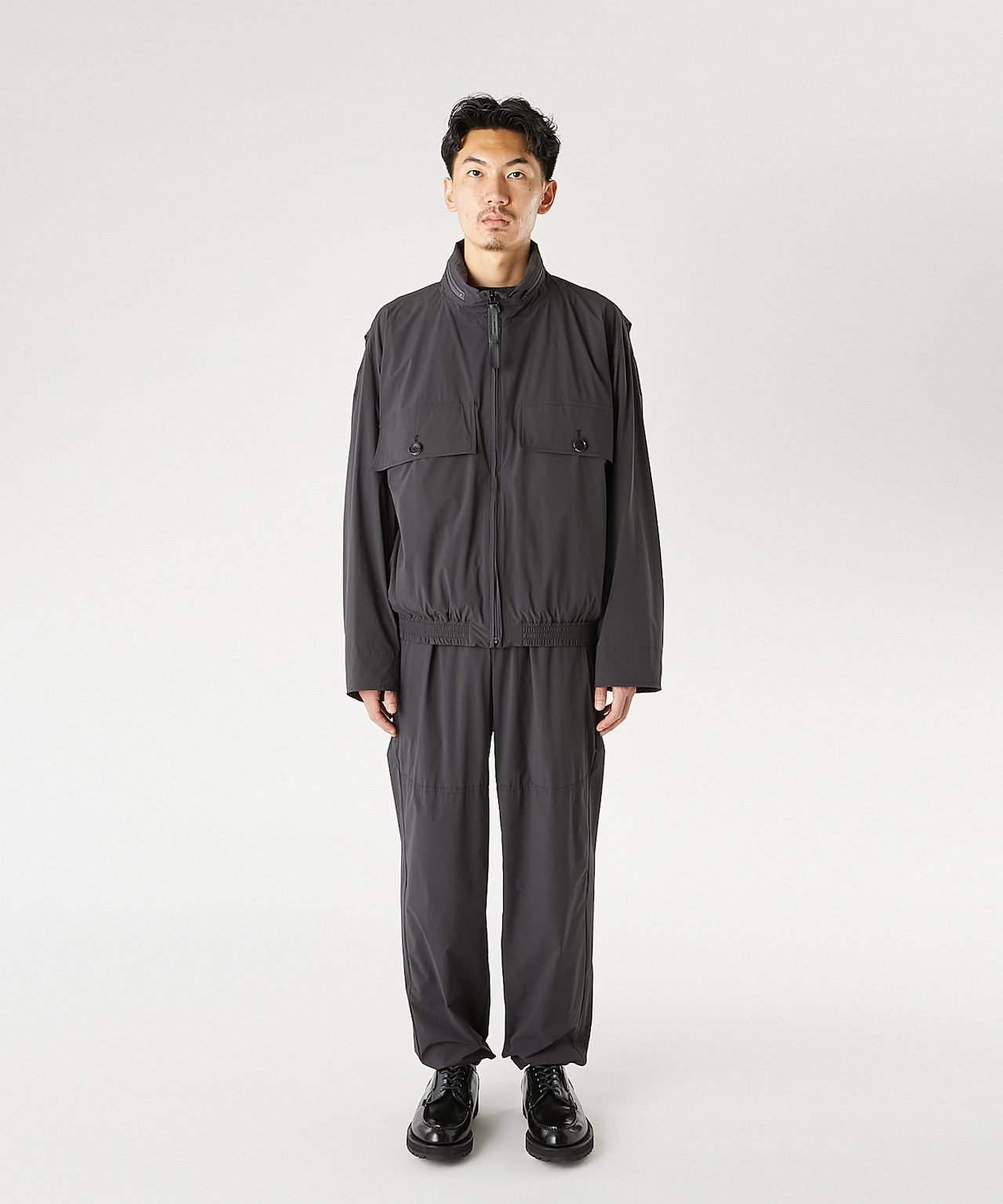 袖口にはタブを備え、フィット感の調整が可能。フロントはムシ隠し仕様のファスナー開きで、すっきりとした表情に仕上げられています。
