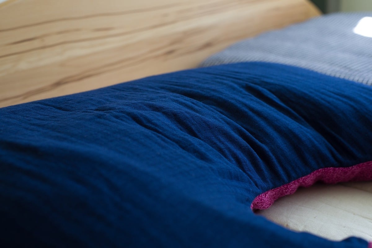 ロングパイルで織り込んだパイル面は、ミニパイルと異なりふんわりとした肌触りを実感いただけます。タオル同様、バンブーレーヨンを交織する事で、防菌、防臭効果があり睡眠時発生する汗や皮脂を素早く吸水し、肌を清潔に保ちます。
