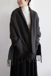 ショールらしく幅が広めです。肩に羽織った時には首元を少し折るとショールカラーのような使い方ができますので、スタイリングの幅も広がります。