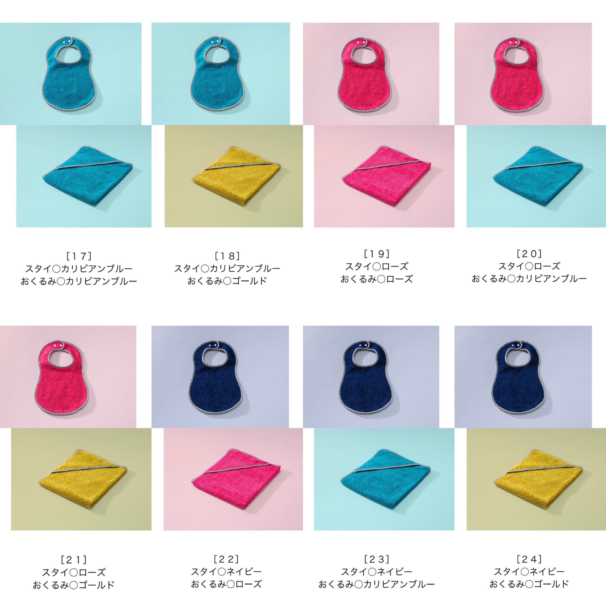 おくるみタオルとカラフルなハッピーカラーのスタイの詰め合わせです。