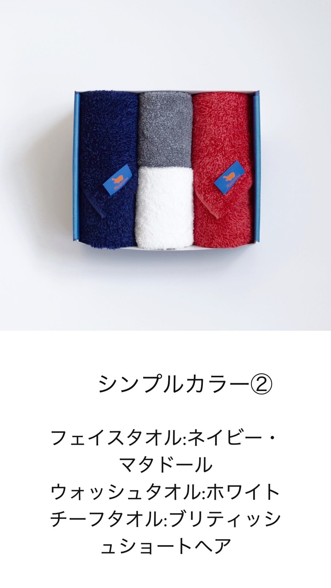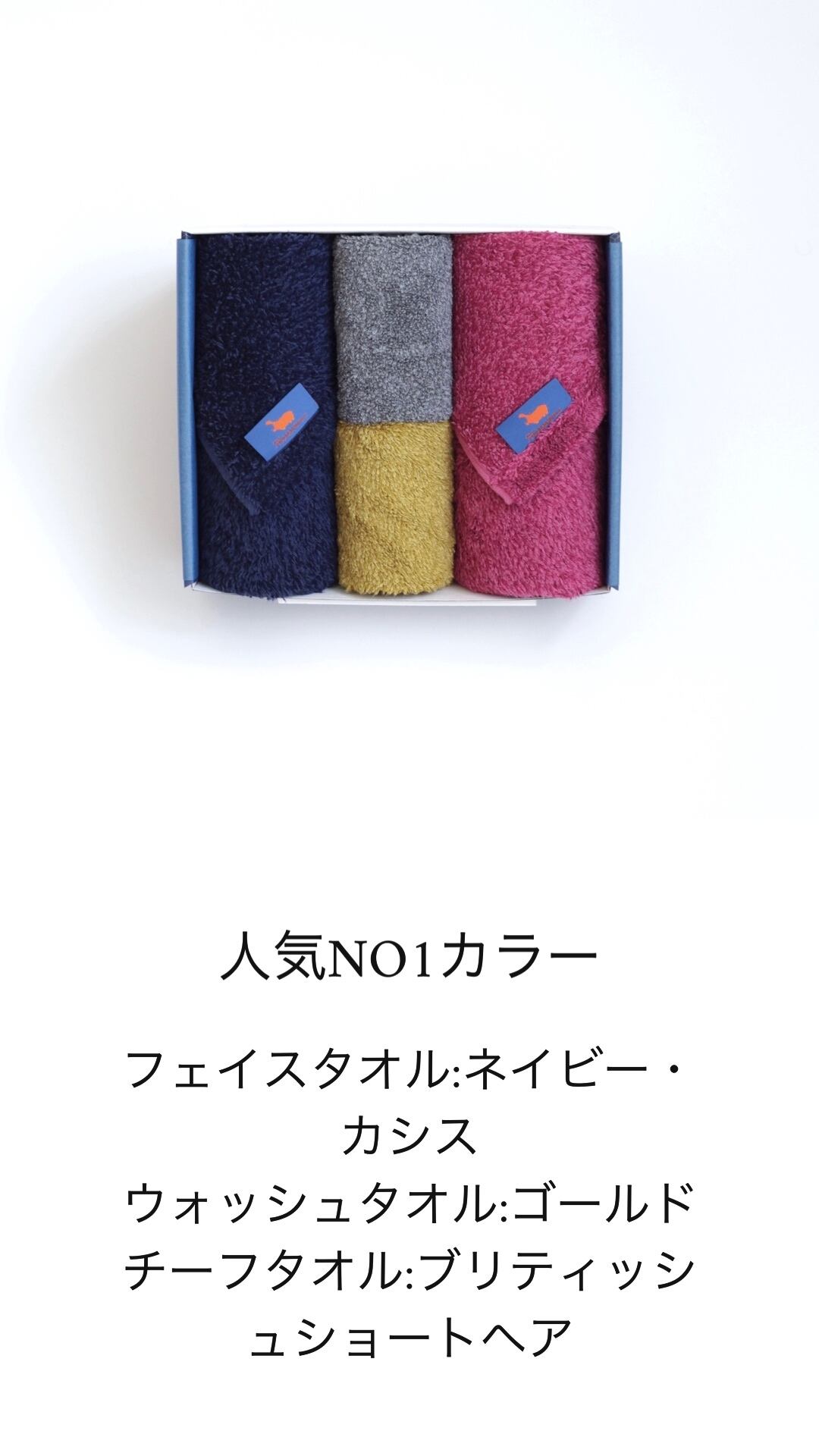 人気NO.1サイズの定番商品、フェイスタオルと持ち運びに便利なコンパクトサイズのウォッシュタオルとチーフタオル(タオルハンカチ)の詰め合わせです。11種類のイメージカラーをご用意いたしました。色の組み合わせの種類をお選び下さい。