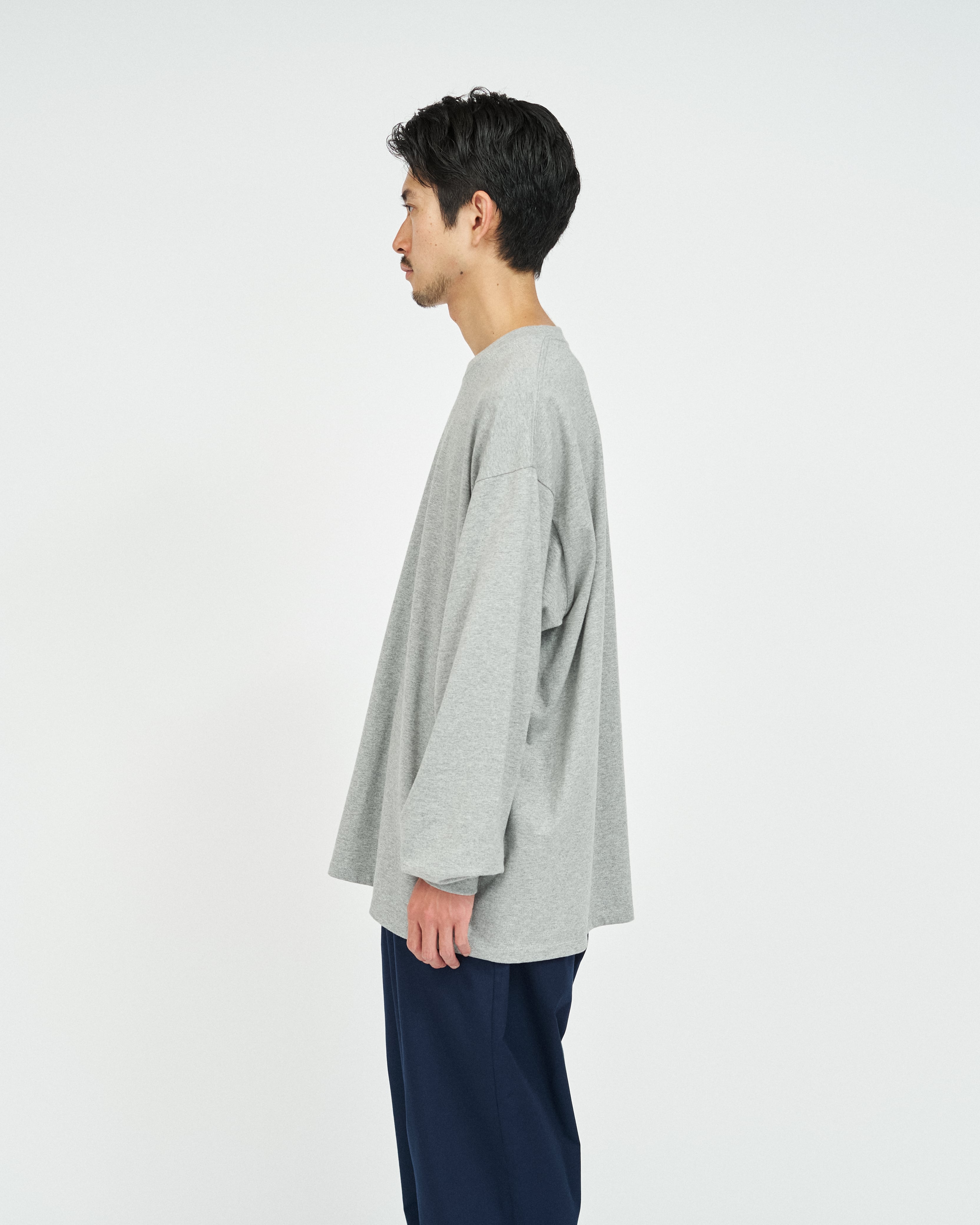 FreshServiceの2枚パックTシャツにロングスリーブが登場。1枚でもインナー使いにも活用出来る6.2ozのボディは空紡糸によって生み出されたふっくらとボリュームがありながらもドライでザックリとした風合いのタフな仕上がり。吸湿性が高く、速乾性に優れている点も特徴。脇に縫い目の無い丸胴仕様も健在で、肩が落ちていてリラックス感のあるオーバーサイズフィット。左裾のスペックプリントがさりげない主張を。