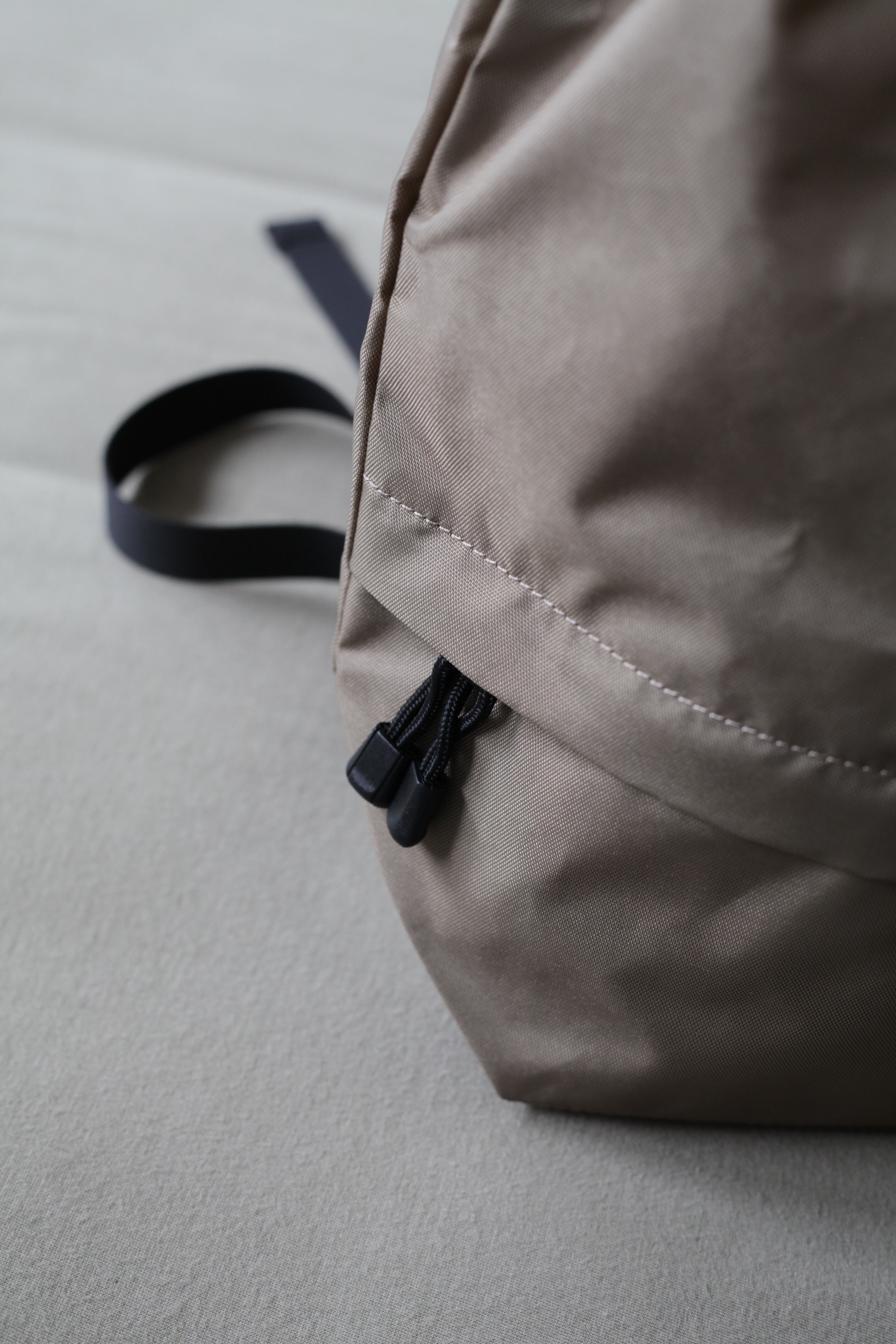適度に光沢のある 420 デニールの厚手ナイロン生地を採用し、前面には、スマートフォン等の小物収納に適したポケットを装備しています。